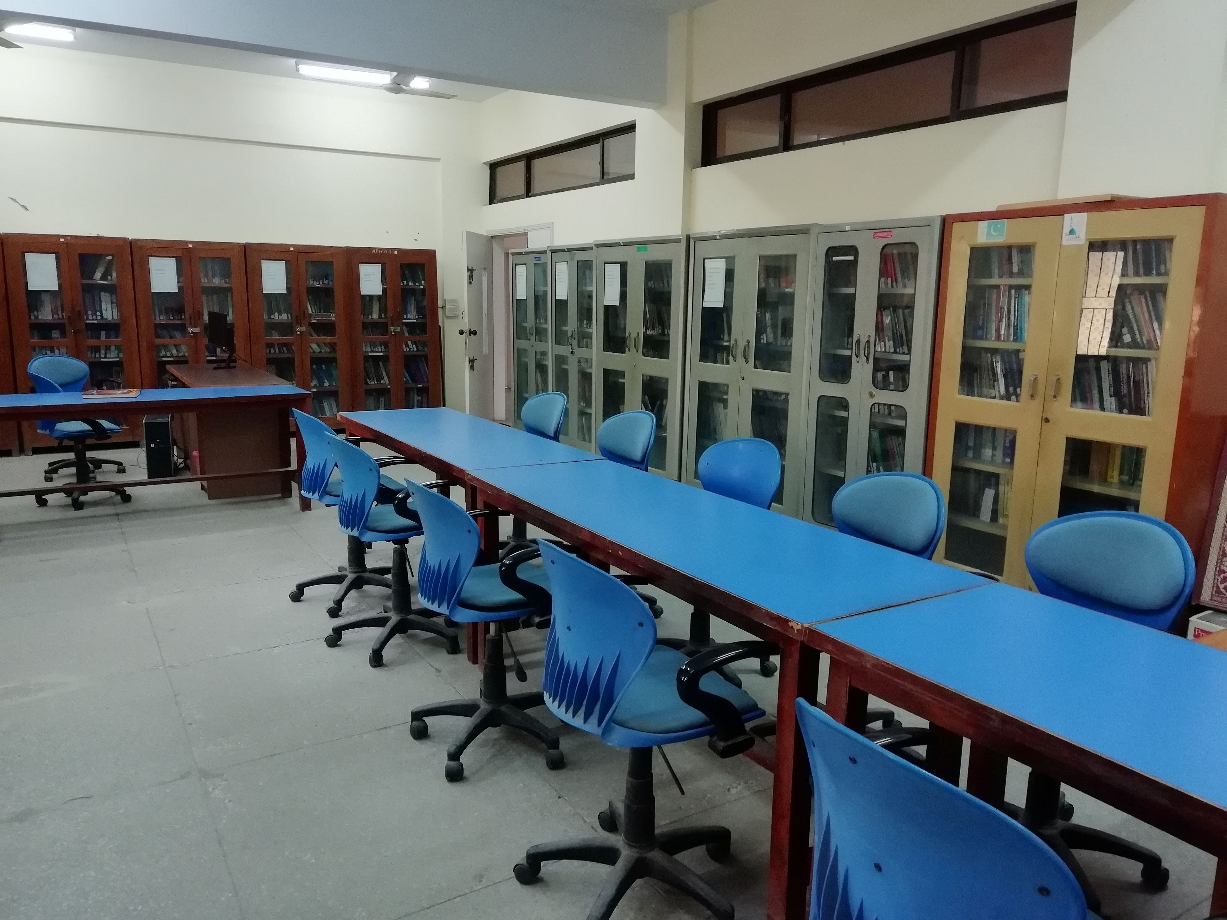 A seminar library, housing a collection of more than 1,500 books and reference materials related to physics, electronics, renewable energy, and advanced technologies, serves as a valuable academic resource for students and researchers.