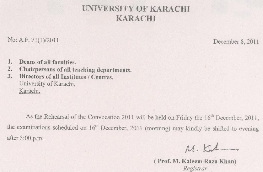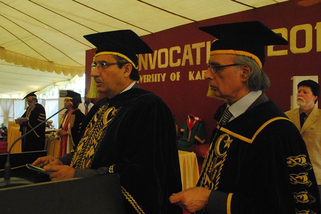 The 22nd Annual Convocation of the university was held on Saturday, December 17, 2011 at the Valika Cricket Stadium, University of Karachi. It was presided over by the Sindh senior minister for Education Pir Mazhar-ul-Haq who is also the Pro Chancellor of the University of Karachi. The Vice Chancellor Prof. Dr. Pirzada Qasim Raza Siddiqui, and the Pro Vice Chancellors Prof. Dr. Shahana Urooj Kazmi and Prof. Dr. Nasir Khan were also present.