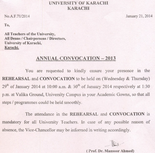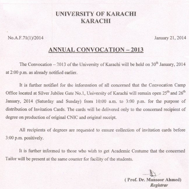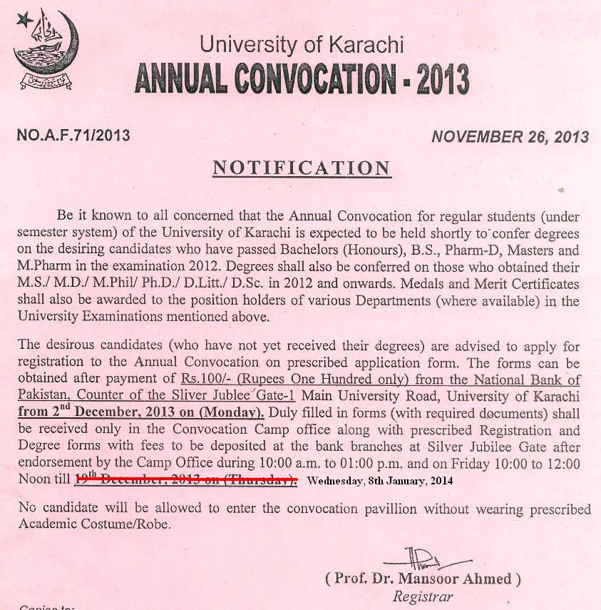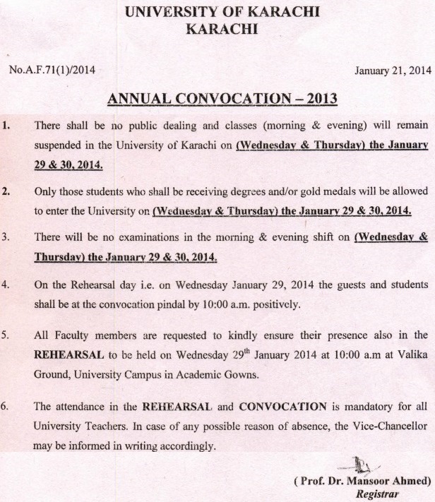 - 7-Jan: Annual Convocation 2013 will be held on January 30, 2014