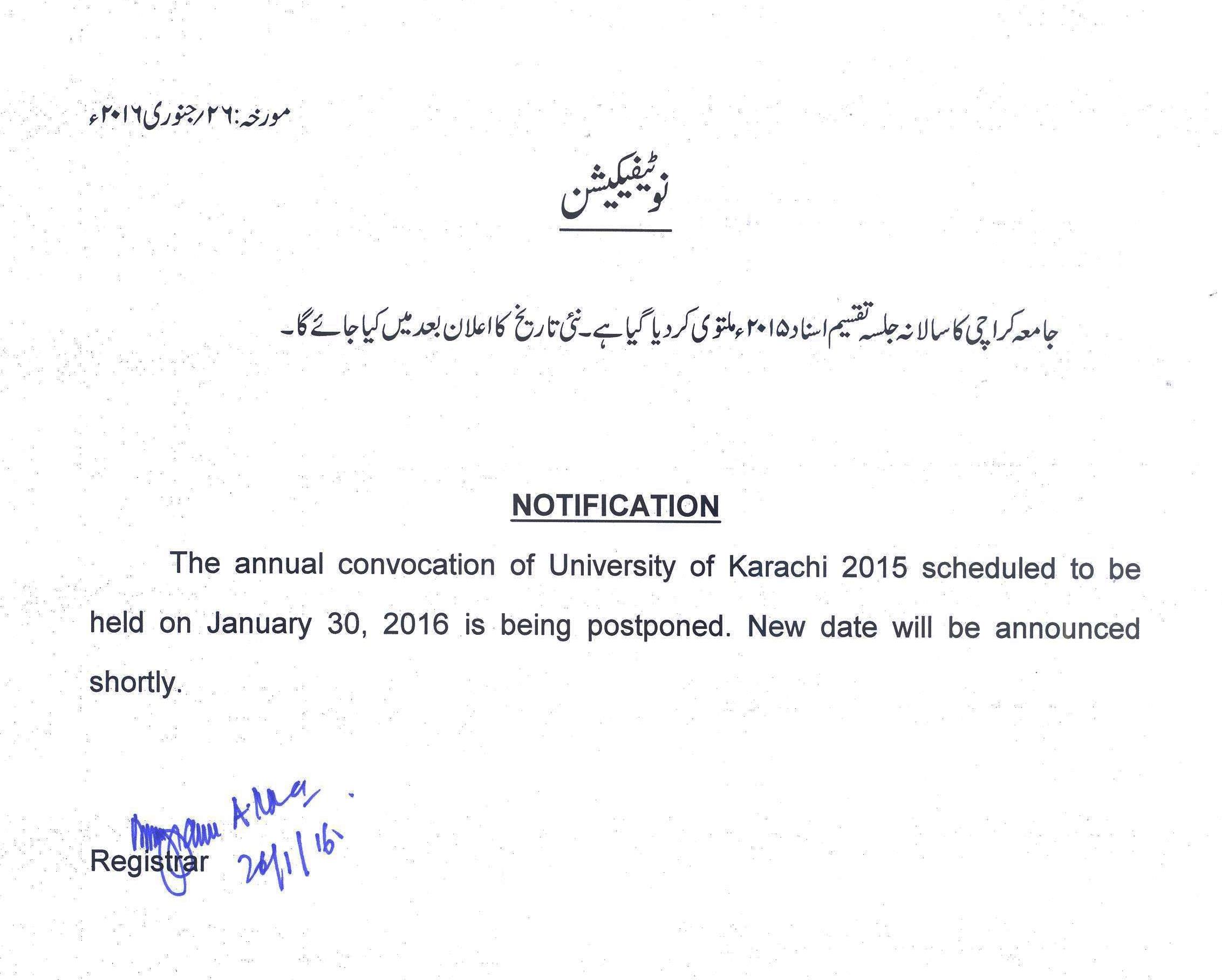 - 26-Jan: Convocation postponed :: Read More