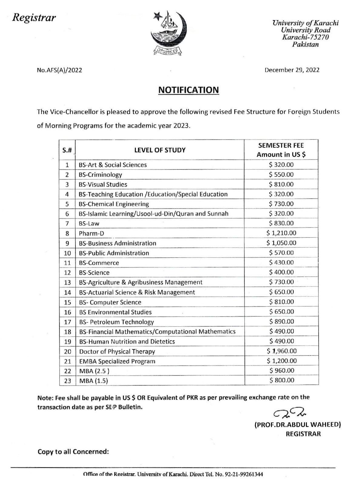 The diversity of degrees offered in various disciplines along with an affordable fee structure at the University of Karachi attracts foreign students from both developing and developed countries every year. The office of the Foreign Students’ Advisor has been established to guide foreign students about the admission process and to facilitate them when they get enrolled in the degree programmes and certificate/ diploma courses offered in different departments at the University of Karachi. Since studying in another country is more challenging, foreign students not only require help in the admission process but also need academic advice to succeed in completing their studies. In the past Students’ Advisor Office used to deal with the issues related to both local and foreign students but later on a separate office was established to deal exclusively with the foreign students’ matters.