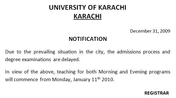 Advisor to the VC for Examination affairs has announced that the BCom (Part-II) paper cancelled on 7-Jan-10 will now be conducted o Sunday 17-Jan-10 from 2-5 pm at the same centers