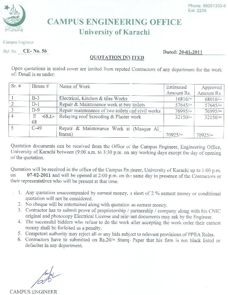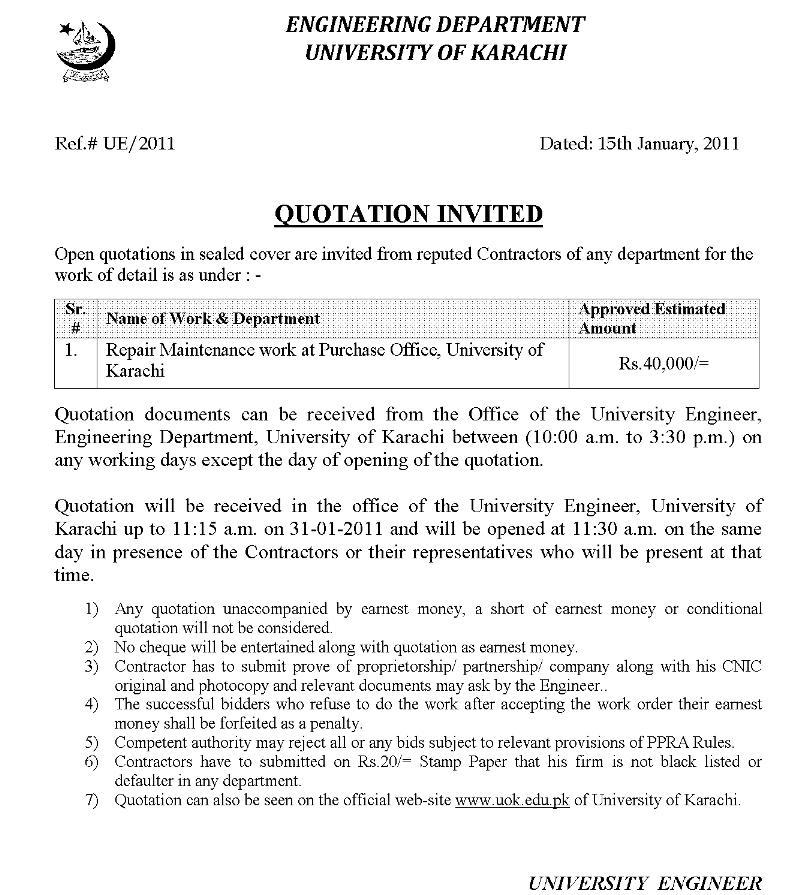 Quotation invited for repair and maintenance work at the Purchase Office - 18/01/11