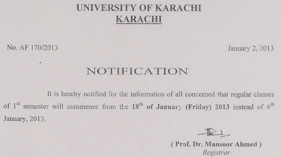 Regular classes of 1st Semester 2013 will commence from Friday, Jan 18, 2013 :: Read More