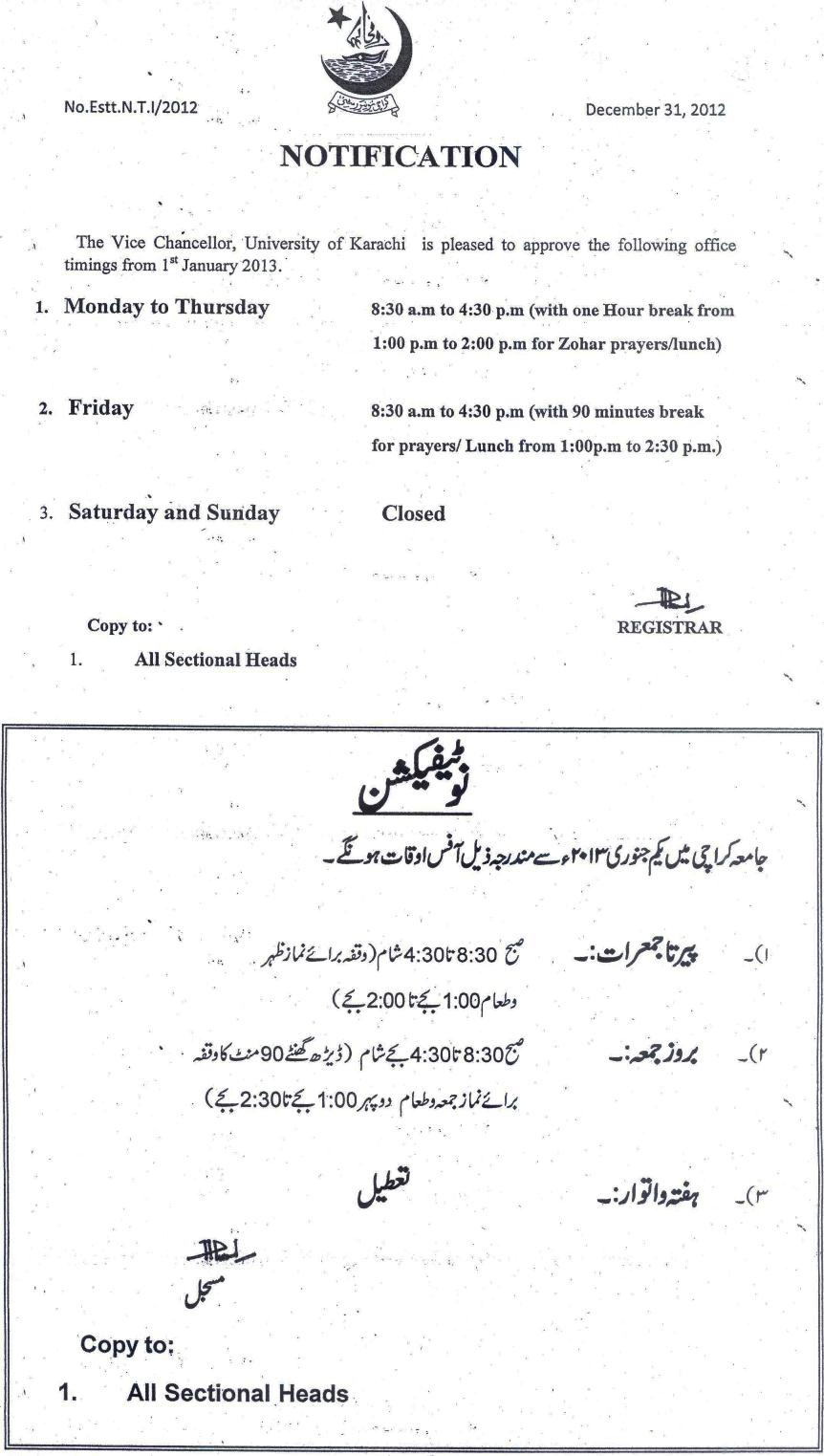 The Vice Chancellor is pleased to approve the following office timing from 1-Jan-2013 :: Read More