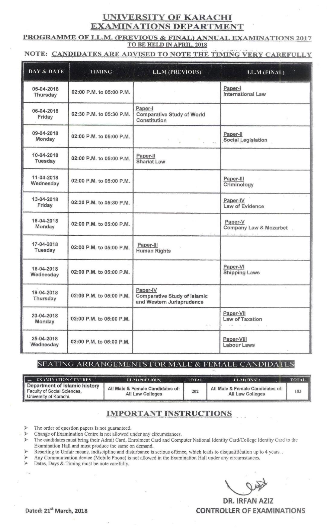 Director Evening Program Prof. Dr. Abid Hasnain has notified that 50 percent late fees waiver for those evening program defaulters who have not yet deposited their fees. This facility is valid for a period till 2nd April, 2018 and no extension will be made afterwards.