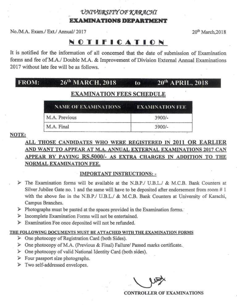 M.A / Double M.A & Improvement of Division External Annual Examination 2017