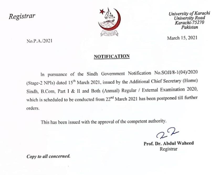Postponement of B.Com Examinations