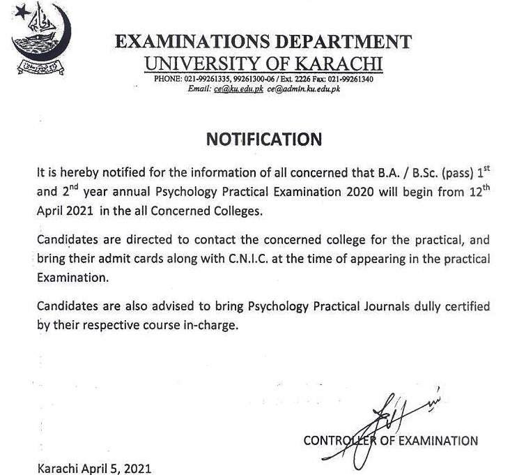 B.A. / B.Sc. (Pass) Psychology Practical Exams 2020