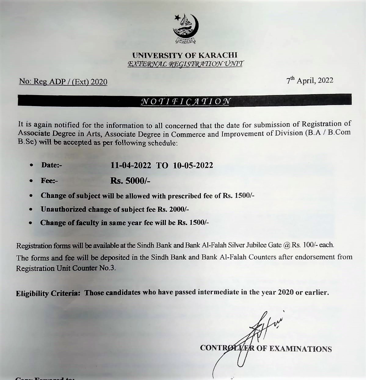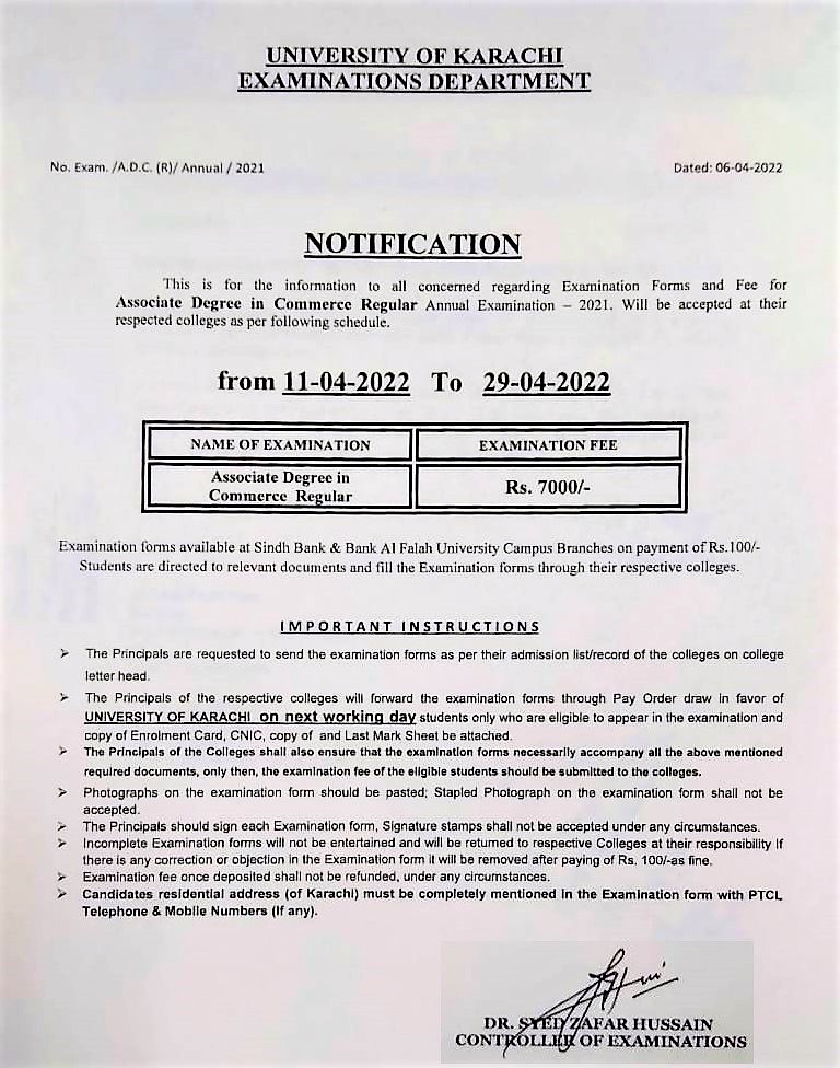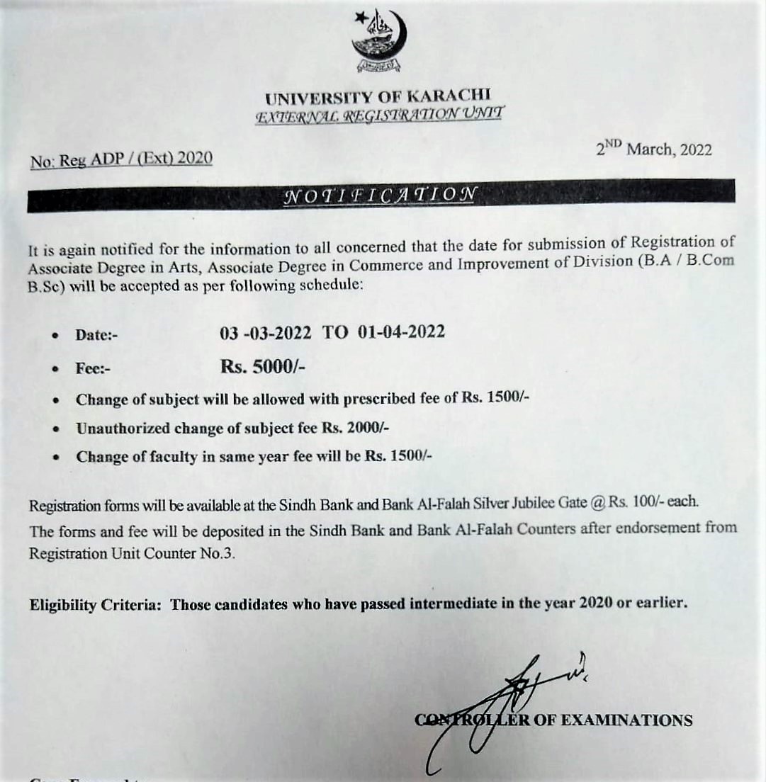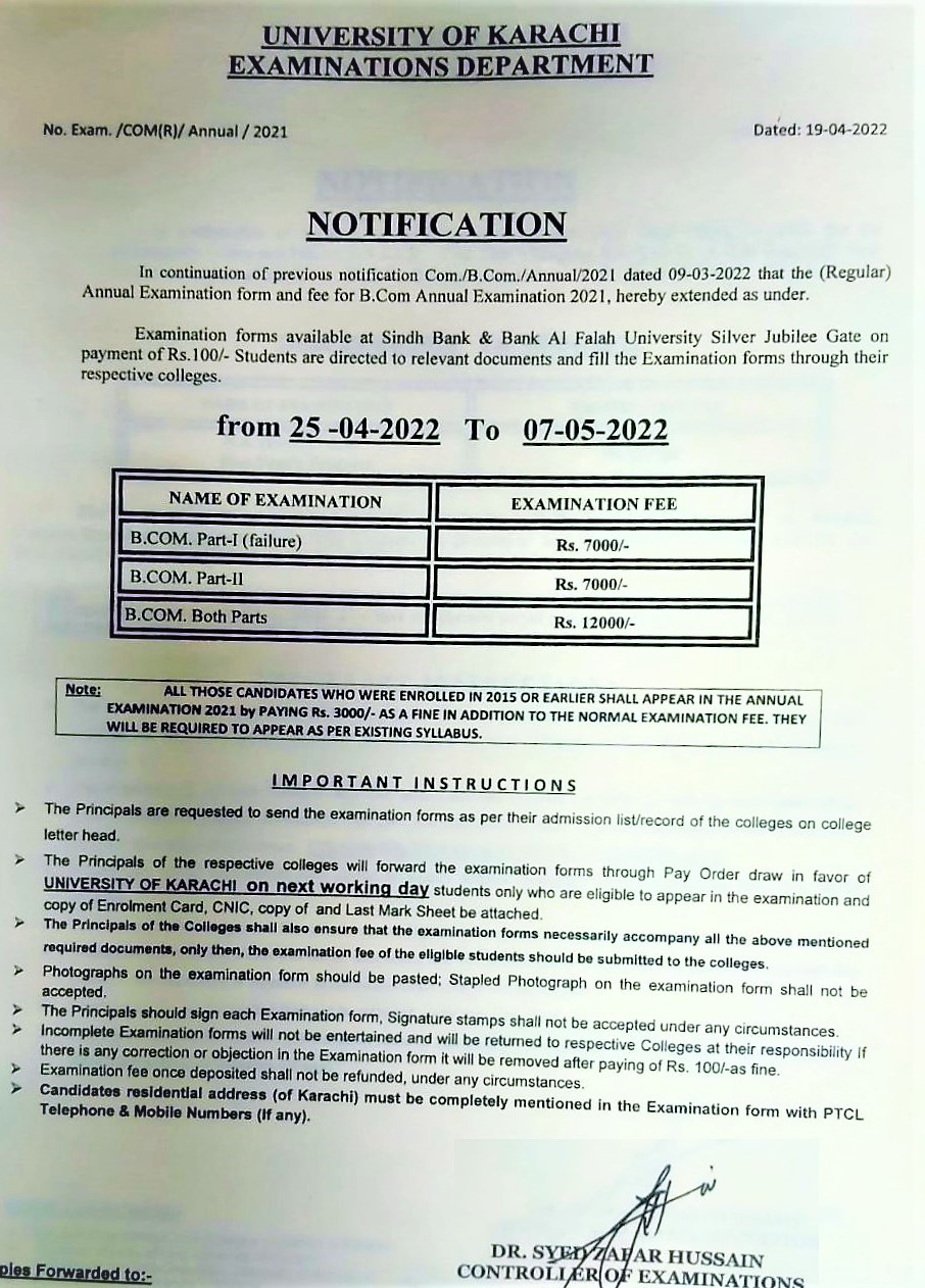 B.Com (Reg) Submission of Examination Form 2021 (Date Extended)