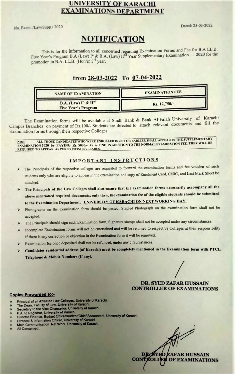 B.A (Law) Supplementary Examination 2020 (Date Extended)