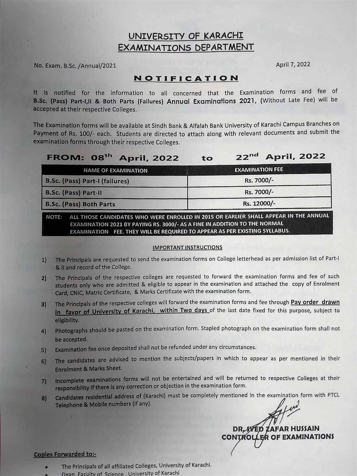 Forms Submission of B.Sc (Failure) Annual Examination 2021
