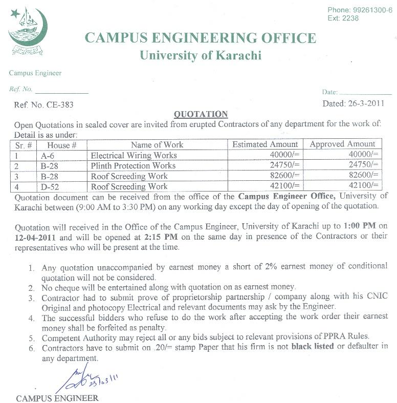 Quotation invited for engineering works - 28/03/11