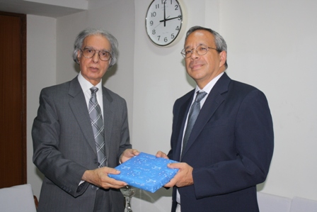Consul General (CG) of France in Karachi Christian Ramage met with Vice Chancellor Pirzada Qasim Raza Siddiqui on a courtesy call. The CG discussed with VC issues of bilateral interest. Later, the VC presented him plaque - 12/04/11