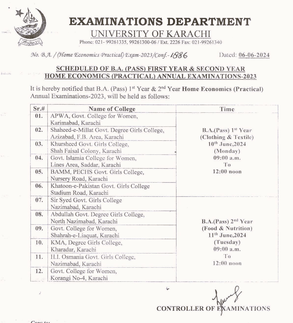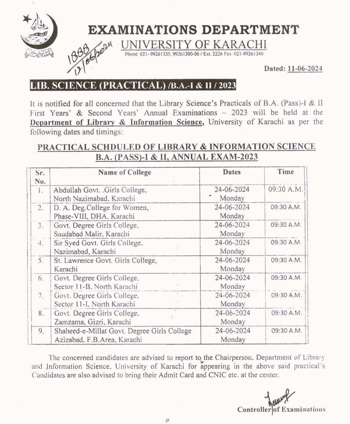 Schedule of B.A (Pass) Library & Information Science Practical Examination 2023