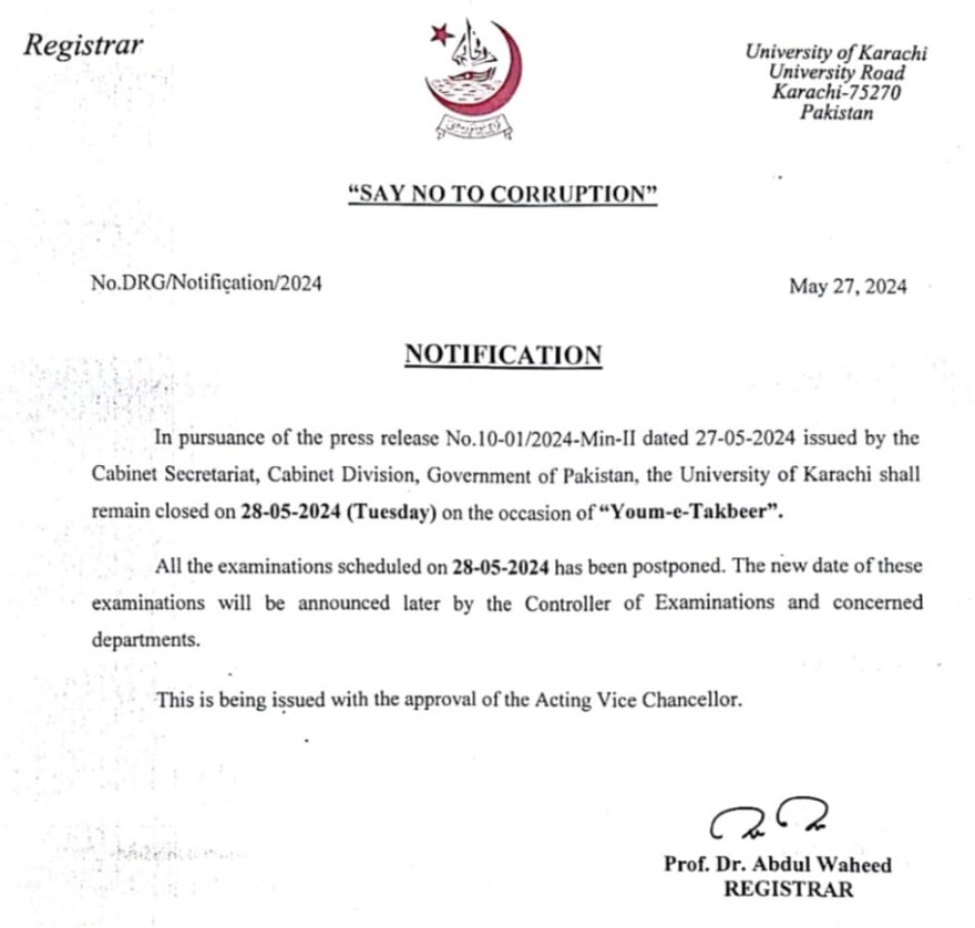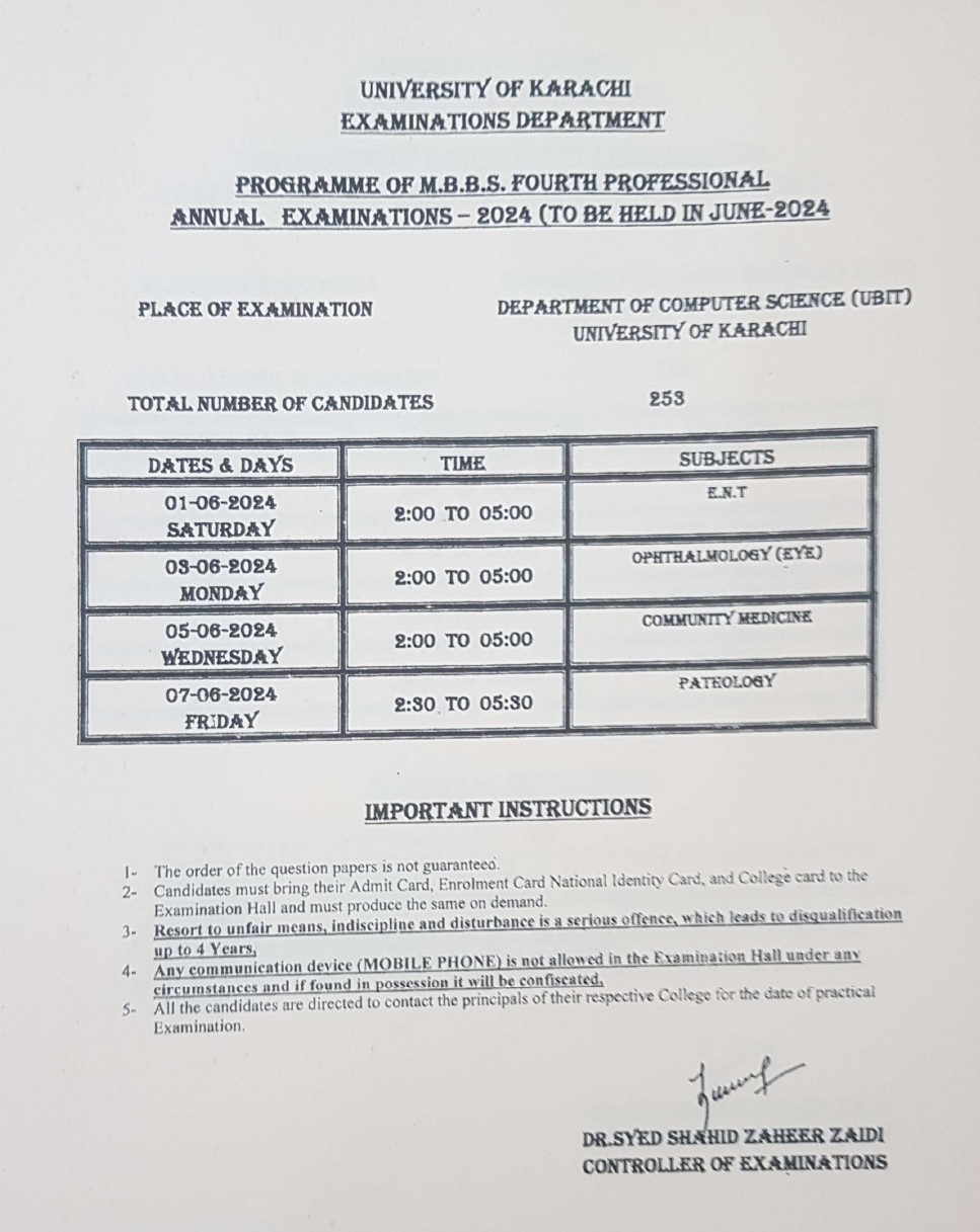 Schedule of MBBS 4th Professional Annual Examination 2024