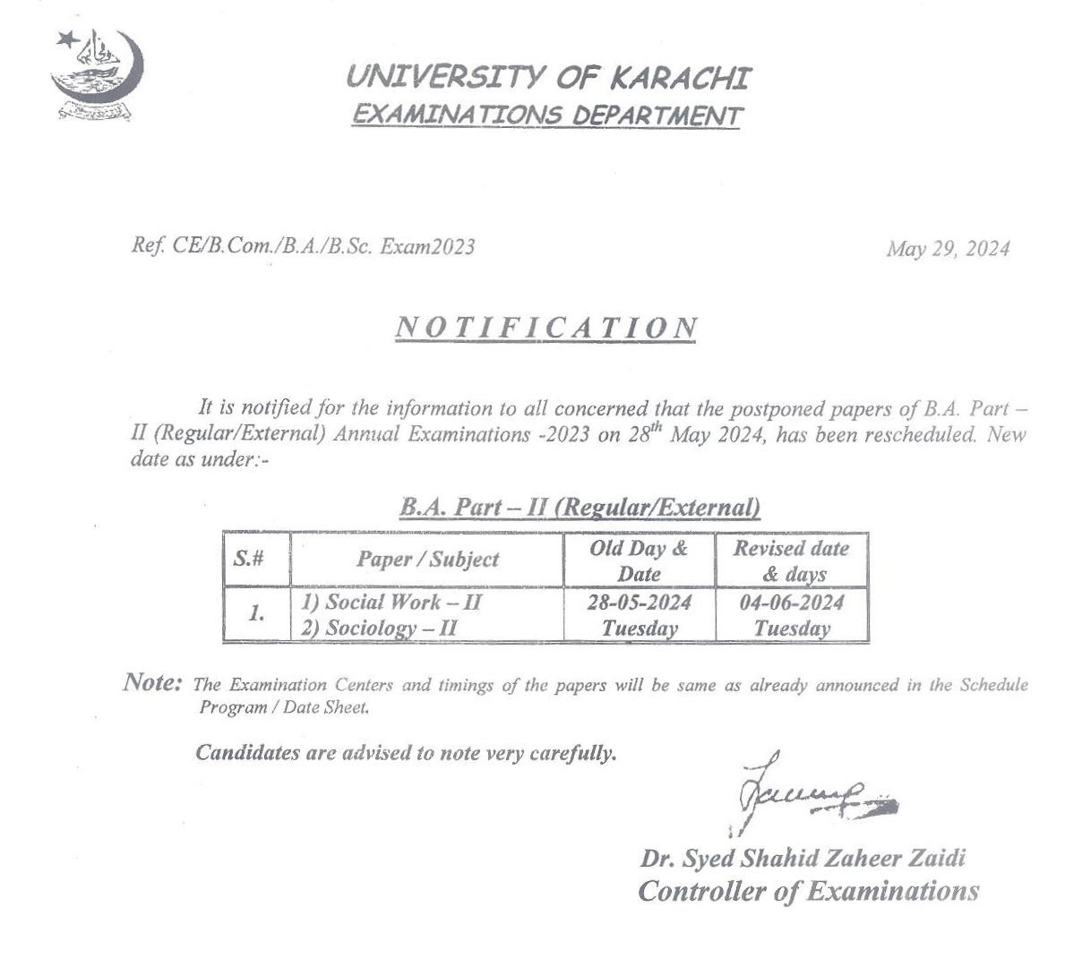 Revised Date B.A. (P) Postponed Paper Annual Examination 2023