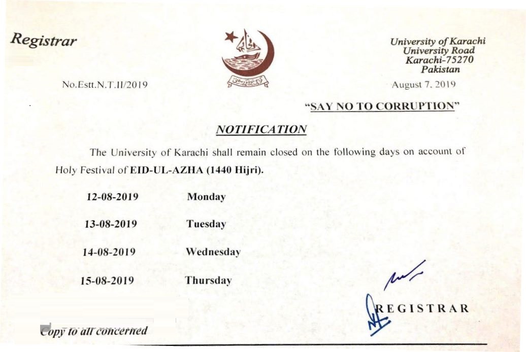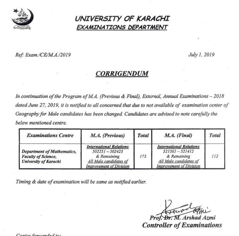 Date Sheet of M.A Annual Examination 2018 (Corrigendum)