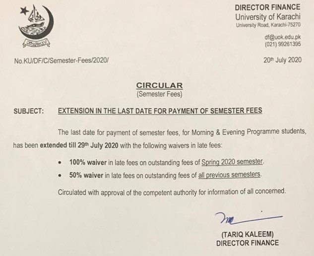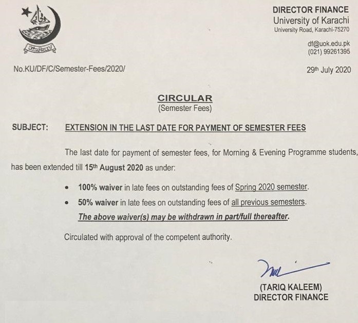 Extension in the Last Date of Semester Fee