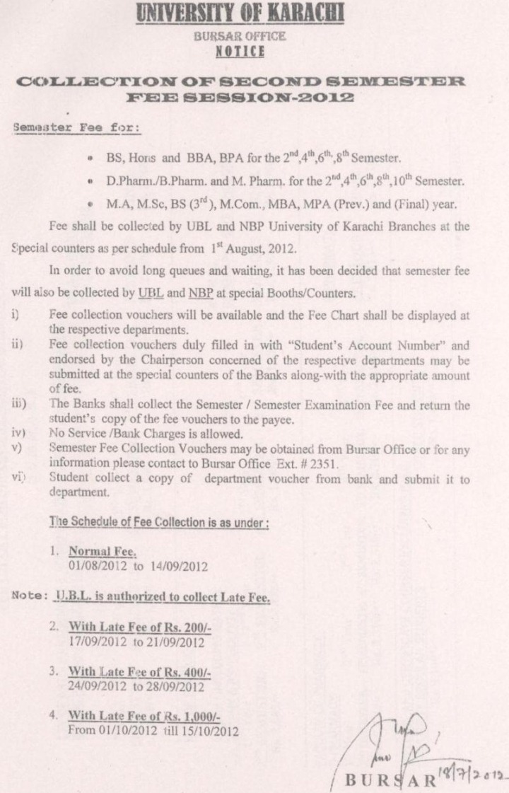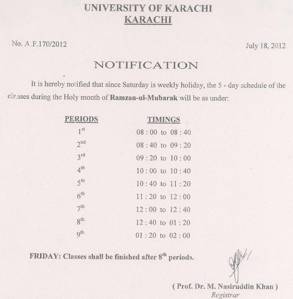 Classes of M.Phil. & M.S. / M.D. 201227 July 2012 Classes of M.Phil. & M.S. / M.D. 2012 has started Monday 16-July-2012 :: Read More Collection of Second Semester Fee 201227 July 2012 Fee shall be collected by UBl and NBP University of Karachi branches between 1-Aug-2012 to 14-Sept-2012 :: Read More M.B.B.S. First Professional Part-B Supplementary Examination 201225 July 2012 Programme has been announced :: Read More Masters and Diploma Programs Evening 2012-1324 July 2012 Provisional List of successful candidates has been announced :: Merit List | Instructions for successful candidates | Closing Vice Chancellor's Message on Ramzan21 July 2012 Ramzan is a month of self-regulation and self-training, with the hope that this training will last beyond the end of Ramzan. If the lessons learned during Ramzan, whether in terms of dietary intake or righteousness, are carried on after Ramzan, there effects will be long lasting," these views were expressed by the Vice Chancellor – Prof. Dr. Muhammad Qaisar on the commencement of the Holy month of Ramzan. He emphasized on the show of tolerance and patience because, according to Dr. Qaisar, this trait of human personality helps a person to cope up with the challegnes of every kind. Fee Concession Programme 2012 (for morning program only)20 July 2012 Applications are invited on the prescribed form :: Read More Mitsubishi Corporation International Scholarship20 July 2012 Mitsubishi Corporation invites scholarship applications :: Read More B.A.S.R. News19 July 2012 Registrar has announced that the Board of Advanced Studies & Research (B.A.S.R.), University of Karachi in its meeting held on 18-07-2012 under the chairmanship of the Vice Chancellor awarded 08 M.Phil., 06 M.S., 27 Ph.D. and 01 M.D. (Master of Medicine) degrees in various disciplines. Ramzan Timing19 July 2012 Registrar has announced the schedule of working hours during the Holy month of Ramzan, according to which the University will follow a five day working week from 8:00am to 2:00pm from Monday to Thursday and 8:00am to 12:30pm on Fridays :: Class Schedule B.A. / B.Com. / B.O.L. and Improvement of Division17 July 2012 Date of submission of Registration for B.A. / B.Com. / B.O.L. and Improvement of Division has been extended :: Read More Scholarship for female (for minorities community only)17 July 2012 Minorities Affairs Department Govt of Sindh Hyderabad, invites applications for scholarships :: Read More Masters and Diploma Programs Admissions Evening 2012-1316 July 2012 MBA (BANKING) Evening Program Admissions 2012-13 Test Scores have been announced :: Read More B.D.S. First Professional Supplementary Examination 201213 July 2012 Programme of examination has been announced :: Read More LL.B. (Final) Annual Examination 201212 July 2012 Programme of examination has been announced :: Read More Masters and Diploma Programs Admissions Evening 2012-139 July 2012 Director Admissions has announced that the Merit List for Masters/Diploma Program Admissions-2012-13 (Evening Program) that was scheduled to be announced on 10th July 2012, will now be announced shortly. The new date for announcement of the list will be communicated soon. Masters and Diploma Programs Admissions Evening 2012-134 July 2012 The Directorate of Evening Program has extended the last date of submission of admission forms till 12th July 2012. The aptitude tests for MBA (Banking) will now be held on 15th July 2012 at 11 aim . in the Faculty of Arts. Directorate of Post Graduate Admission, Board of Advanced Studies & Research3 July 2012 It is notified to all Dean of Faculties & all Chairpersons/Directors of different Department/Institute/Centers that the last date for submission of Admission Forms and fee of MPhil/PhD & MS (Surgery)/MD (Medicine) program 2012 is extended up to July 13, 2012. Schedule for Annual Examinations of MA (Regular/Private) 2011 (to be held in 2012)2 July 2012 Controller of Examinations, University of Karachi, has announced the schedule for Annual Examinations of MA (Regular/Private) 2011 (to be held in 2012). The examinations will commence from July 2nd 2012 which will be attended by 19448 candidates (previous and final year) approximately out of which 8526 are male candidates whereas 10921 are female candidates. As per details, 32 centres have been established where exams will be conducted in two shifts. Department of Biochemistry to celebrate its Golden Jubilee2 July 2012 Department of Biochemistry is celebrating the completion of 50 years of Department's academic excellence. In this connection, a 5-day international event named BioCon is being organized from 9th to 11th July 2012. The event will be comprised of International Conference on Biochemistry in the post-genomic era which will be attended by well-known researchers and academicians from around the world. 2 workshops are also offered for technical skill development of PhD students and researchers. The Chairperson of the Department – Prof. Dr. Nikhat Ahmed Siddiqui, has specially invited the Alumni of the Department to participate in the event. |