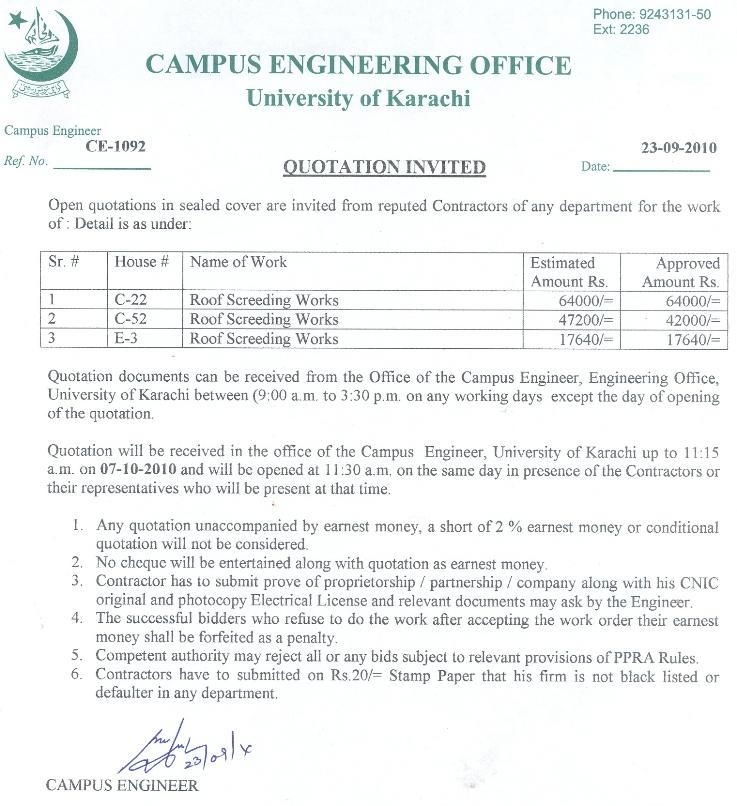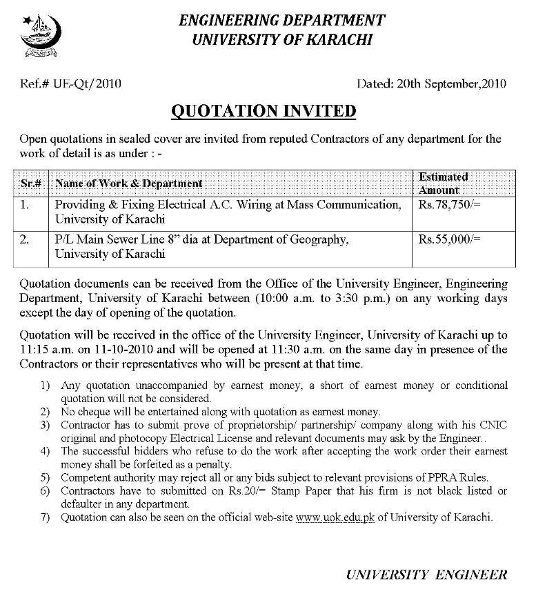 Registrar UoK has announced that the University of Karachi shall remain closed on 7th September 2010 on account of SHAB-E-QADAR and from 10th September to 13th September on account of EID-UL-FITR