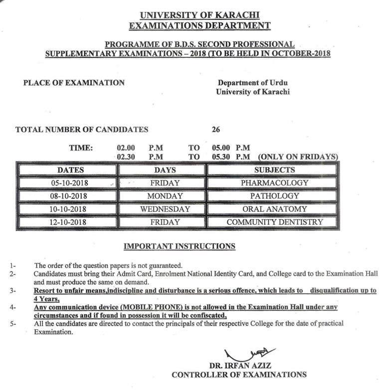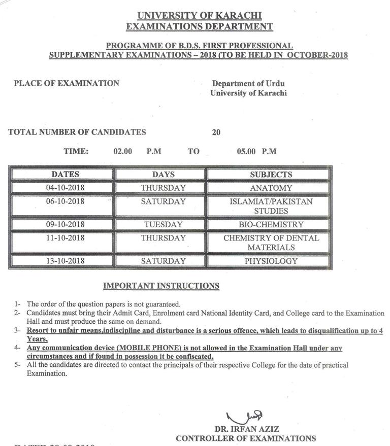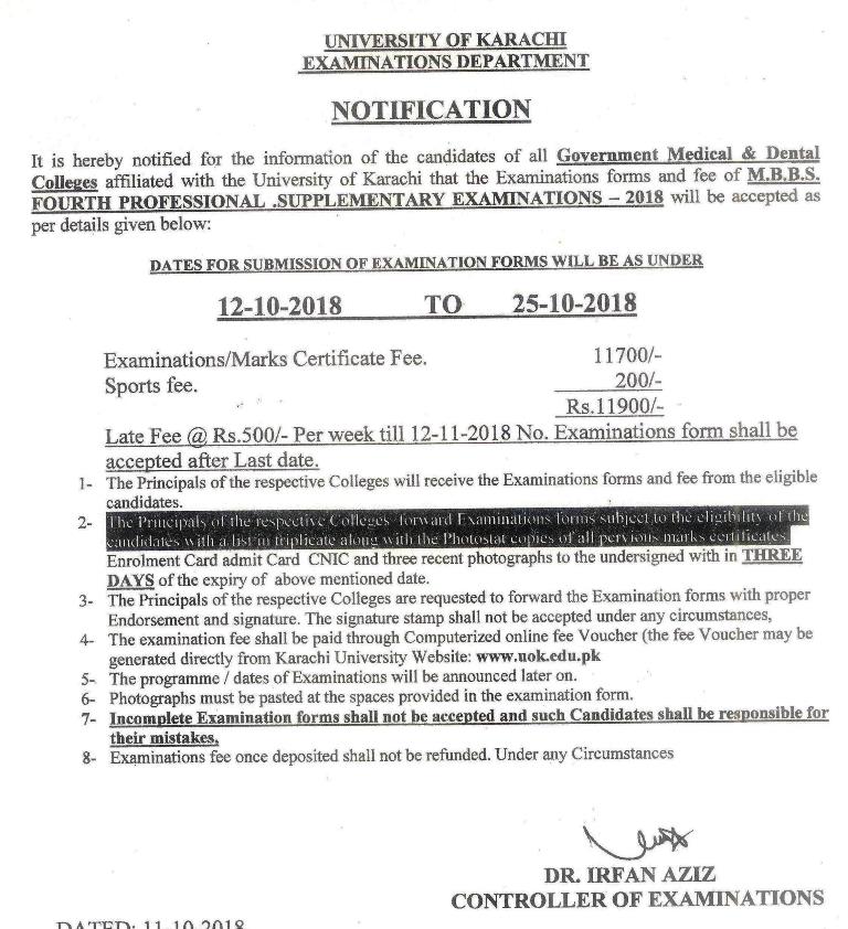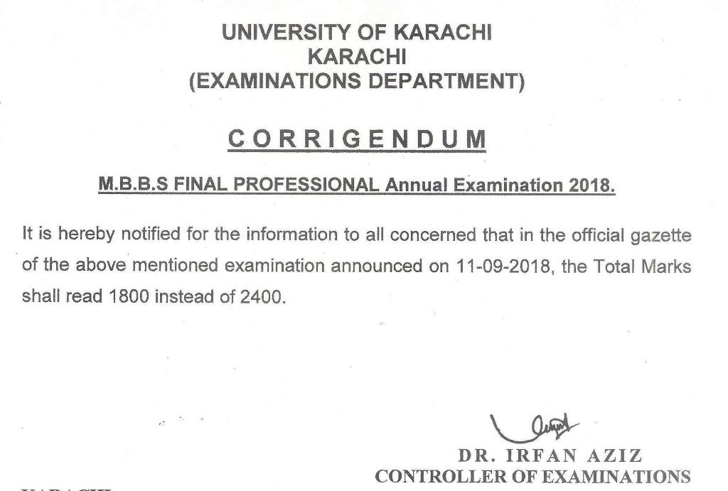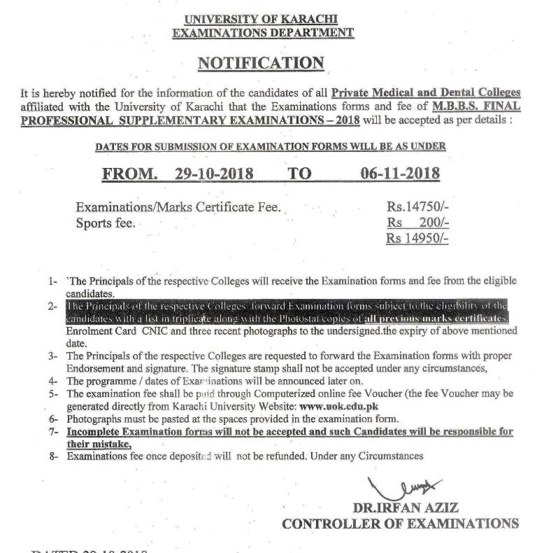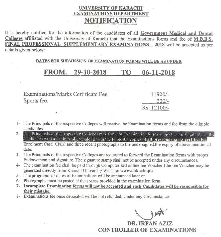 M.B.B.S. Final Professional Supplementary Exam 2018