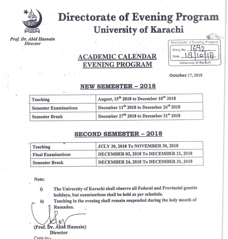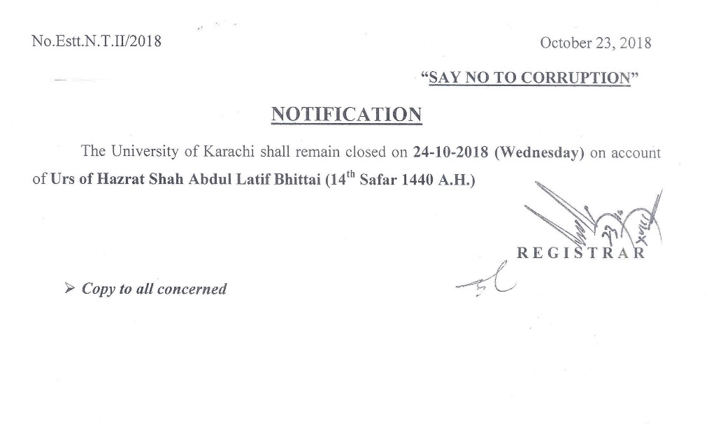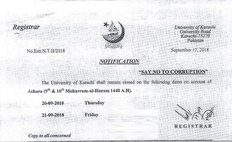 A seminar on Clean and Green Pakistan, A step ahead organized by Department of Chemistry, University of Karachi will be held on Friday, 2nd November 2018 at Arts Auditorium, at 9 am. Director Sindh Environmental Protection Agency Waqar Hussain Phulpoto will be the Chief Guest while Vice Chancellor Prof. Dr. Muhammad Ajmal Khan will preside. Registrar Prof. Dr. Majid Mumtaz, Dean faculty of Science KU Prof. Dr. Tasneem Adam Ali, Registrar PNEC NUST Lt. Cdr. Dr. Mobin Siddiqui, Dr. Hajira Tahir and Dr. Rafia Azmat will also deliver the address.