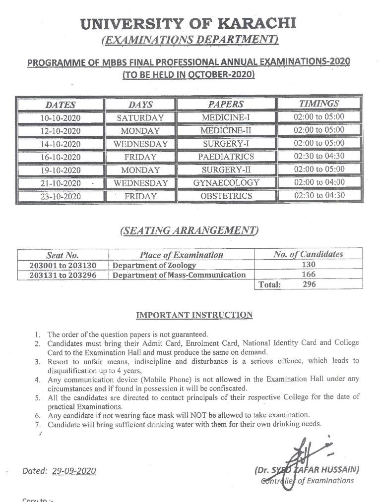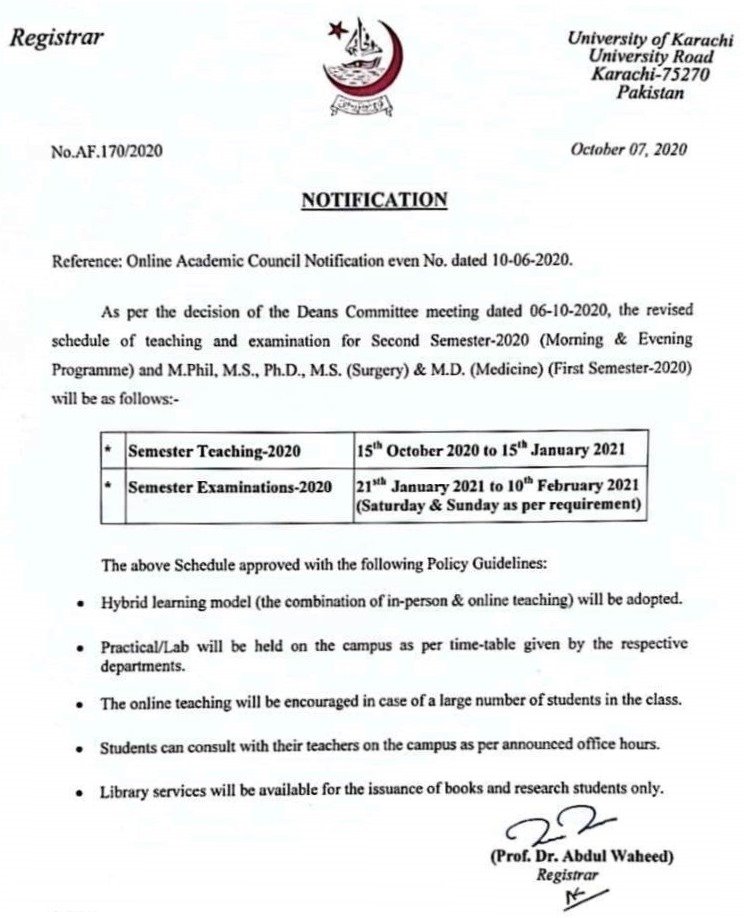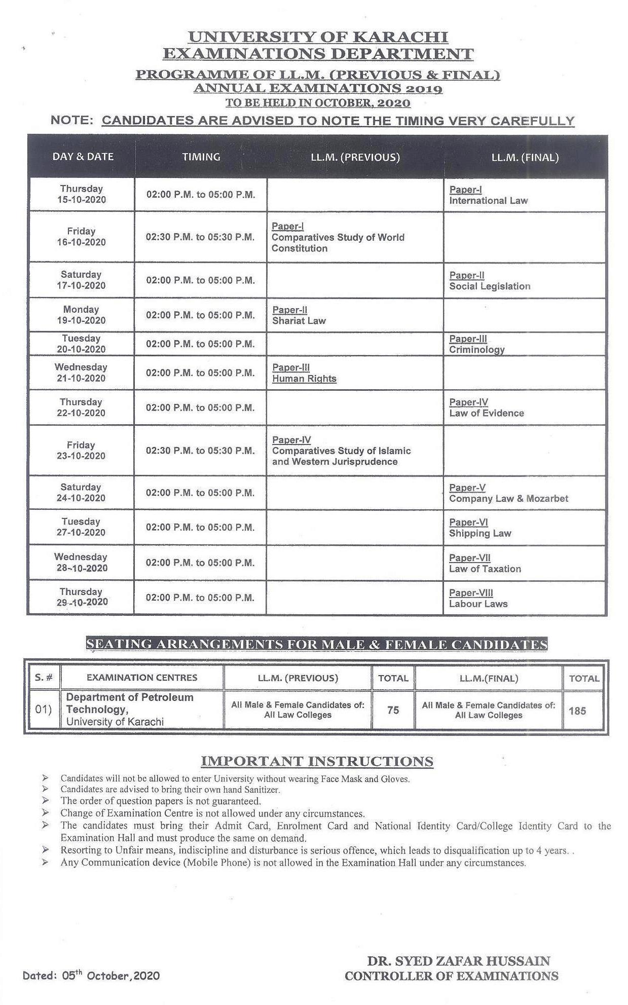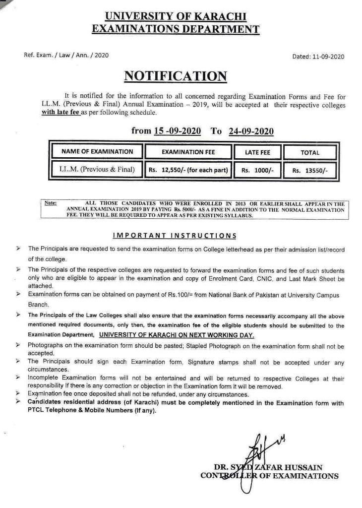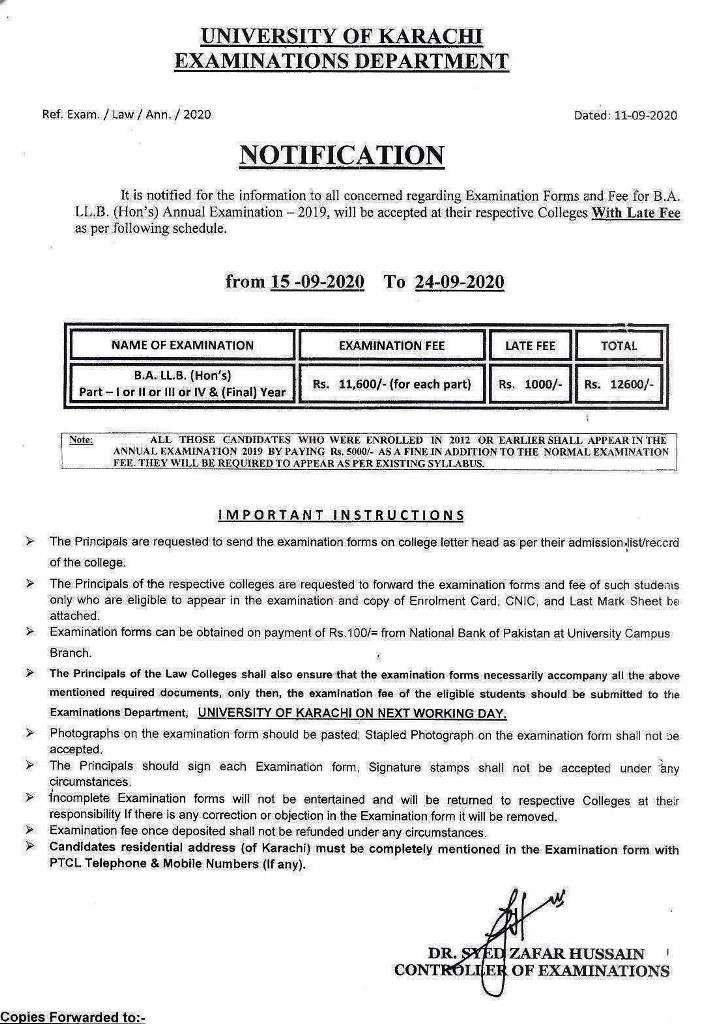 B.A LL.B (Hon's) Annual Exmination Schedule 2019