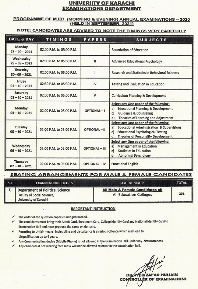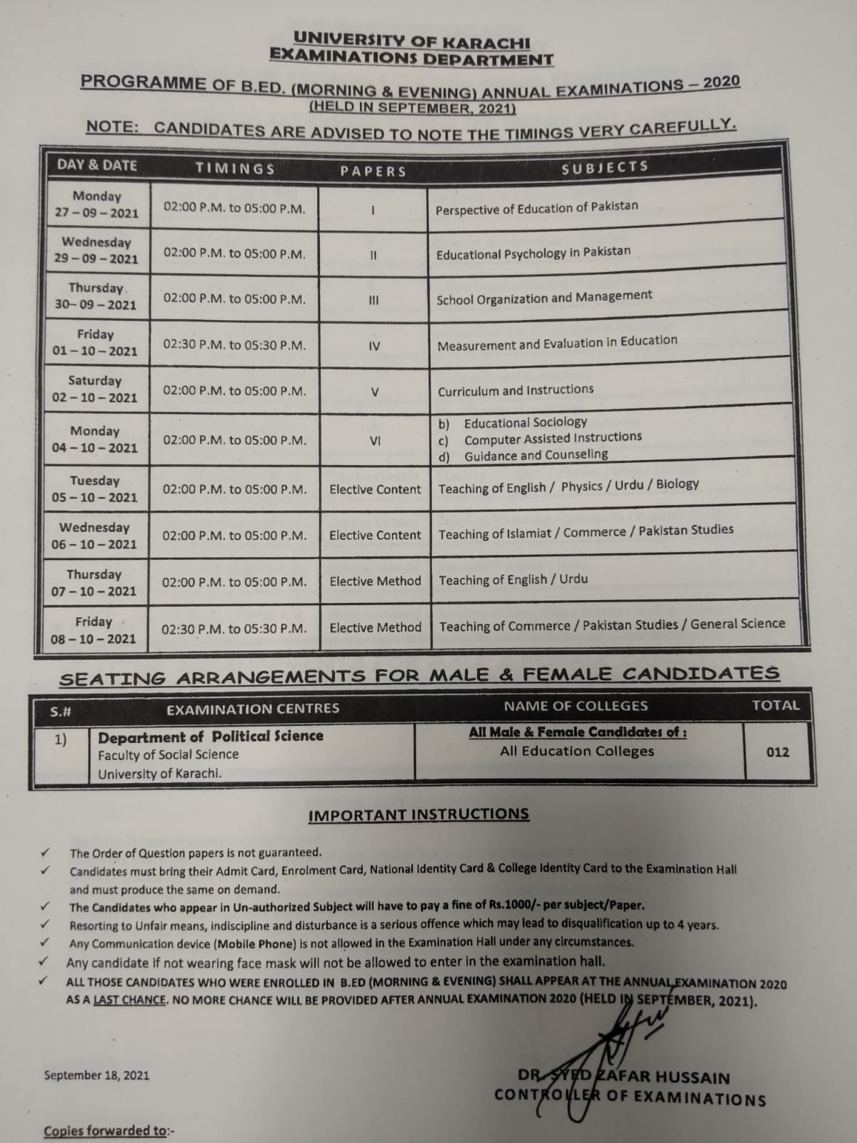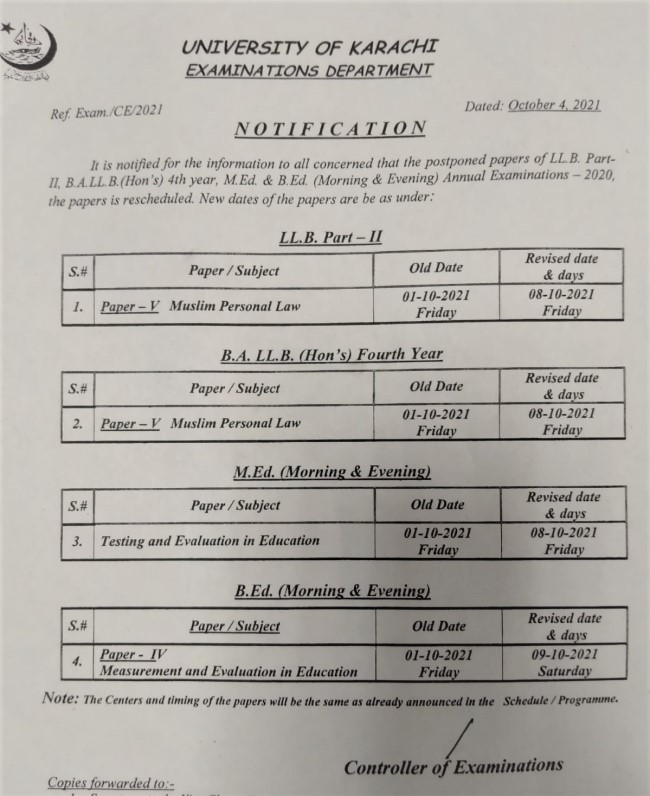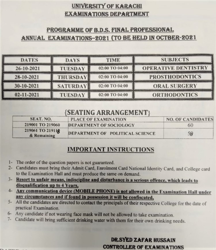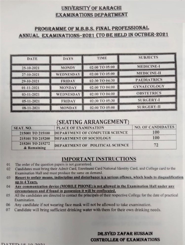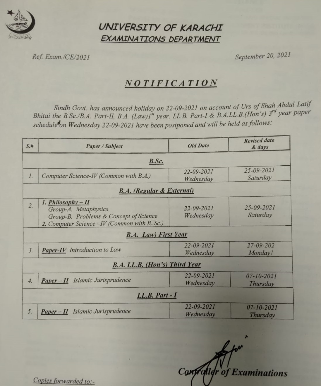Fee Schedule B.A. LL.B (Hons) Final & LL.B (Final) Annual Examination 2020