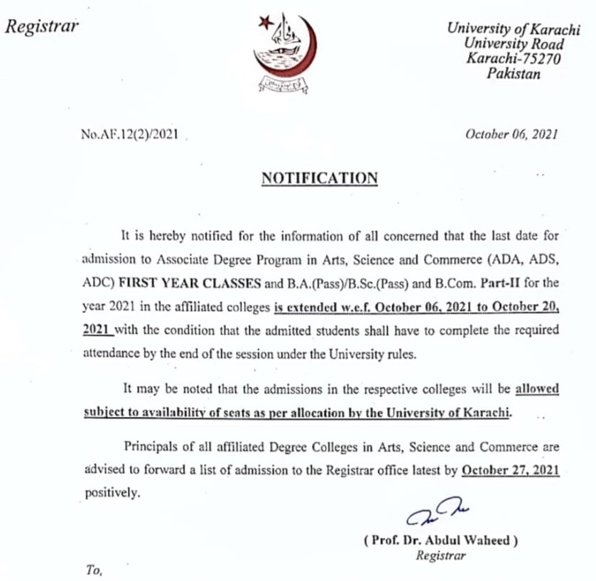 Admission Date Extended for Associate Degree Program in the Affiliated Colleges