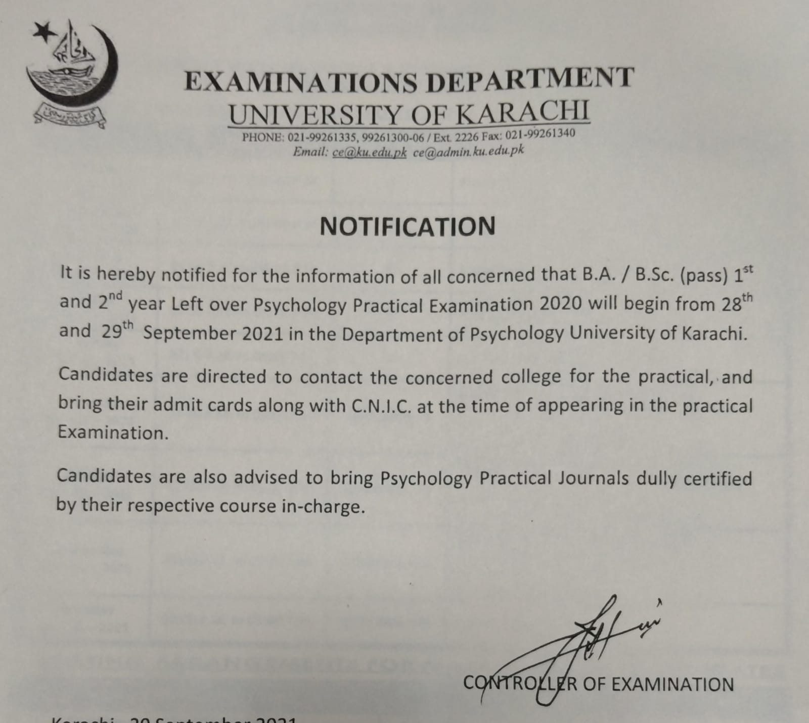 Fee Schedule of B.A (Law) & B.A LL.B(Hon's) Annual Examination 2020