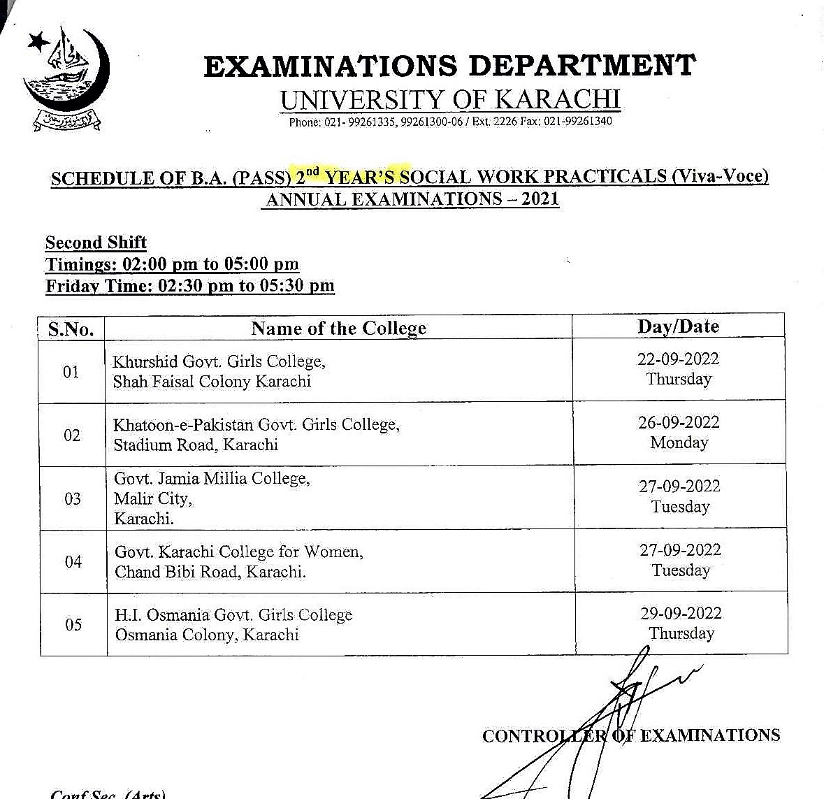 B.A (Pass) Social Work Practicals Annual Examinations 2021