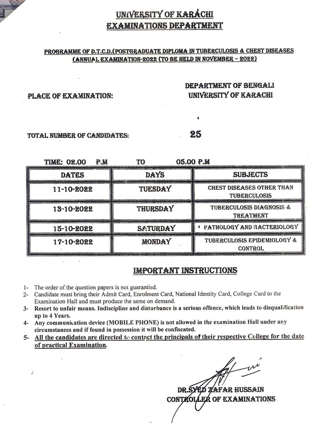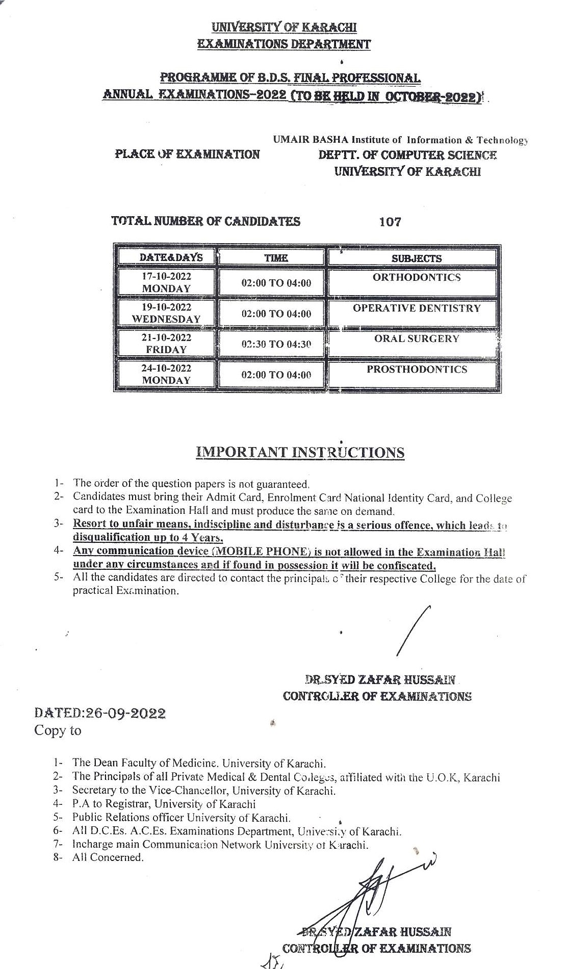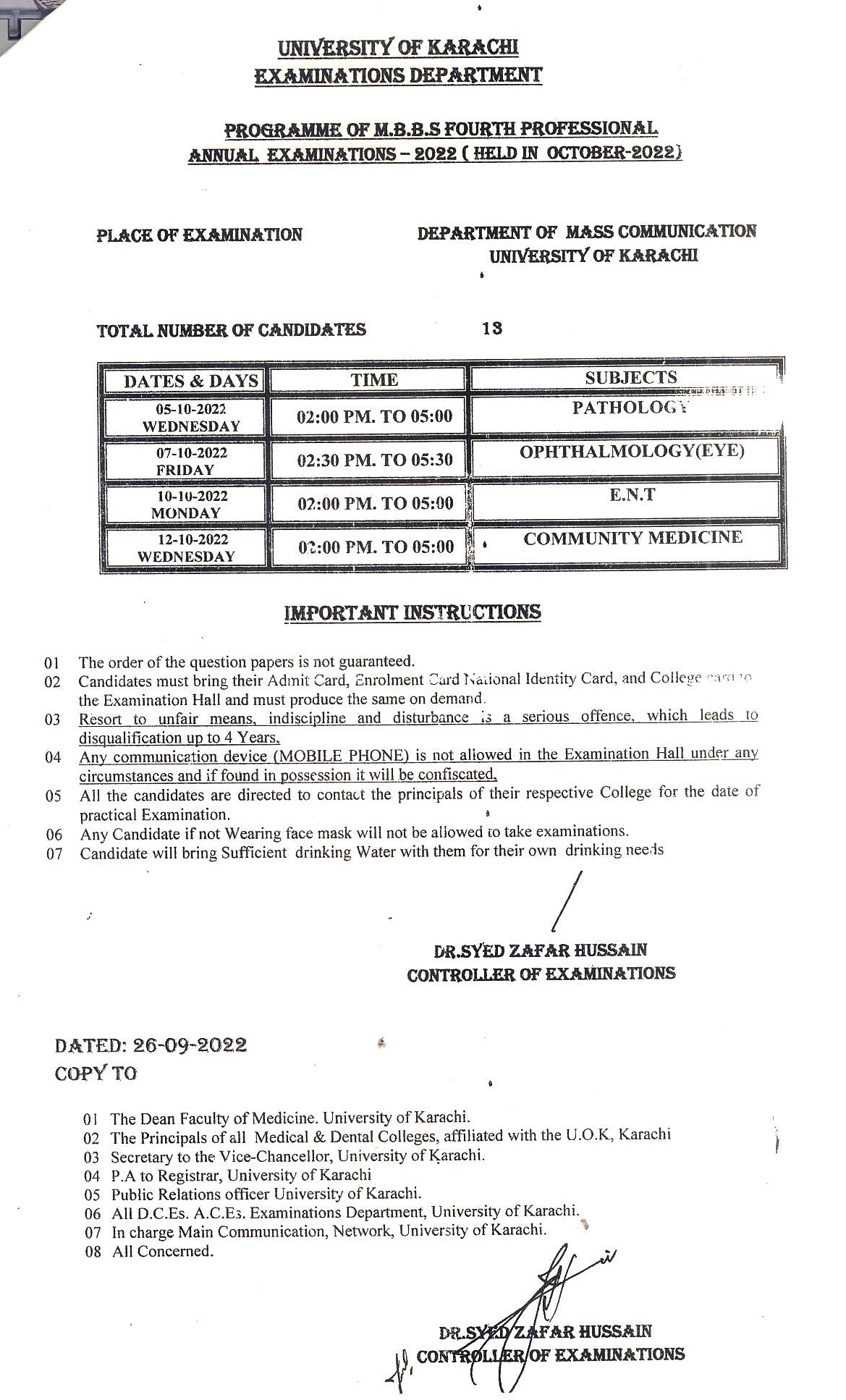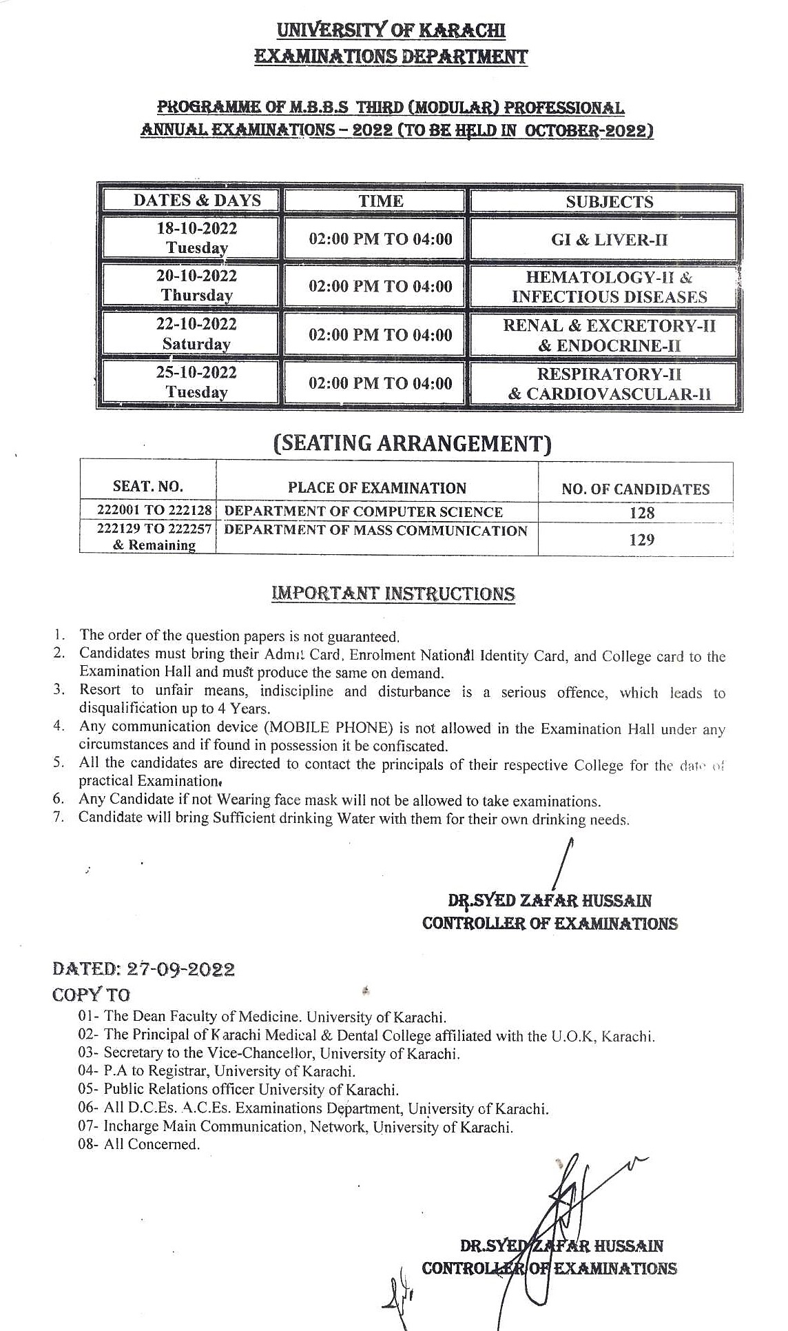 Program of MBBS-III (Modular) Professional Annual Examinations 2022