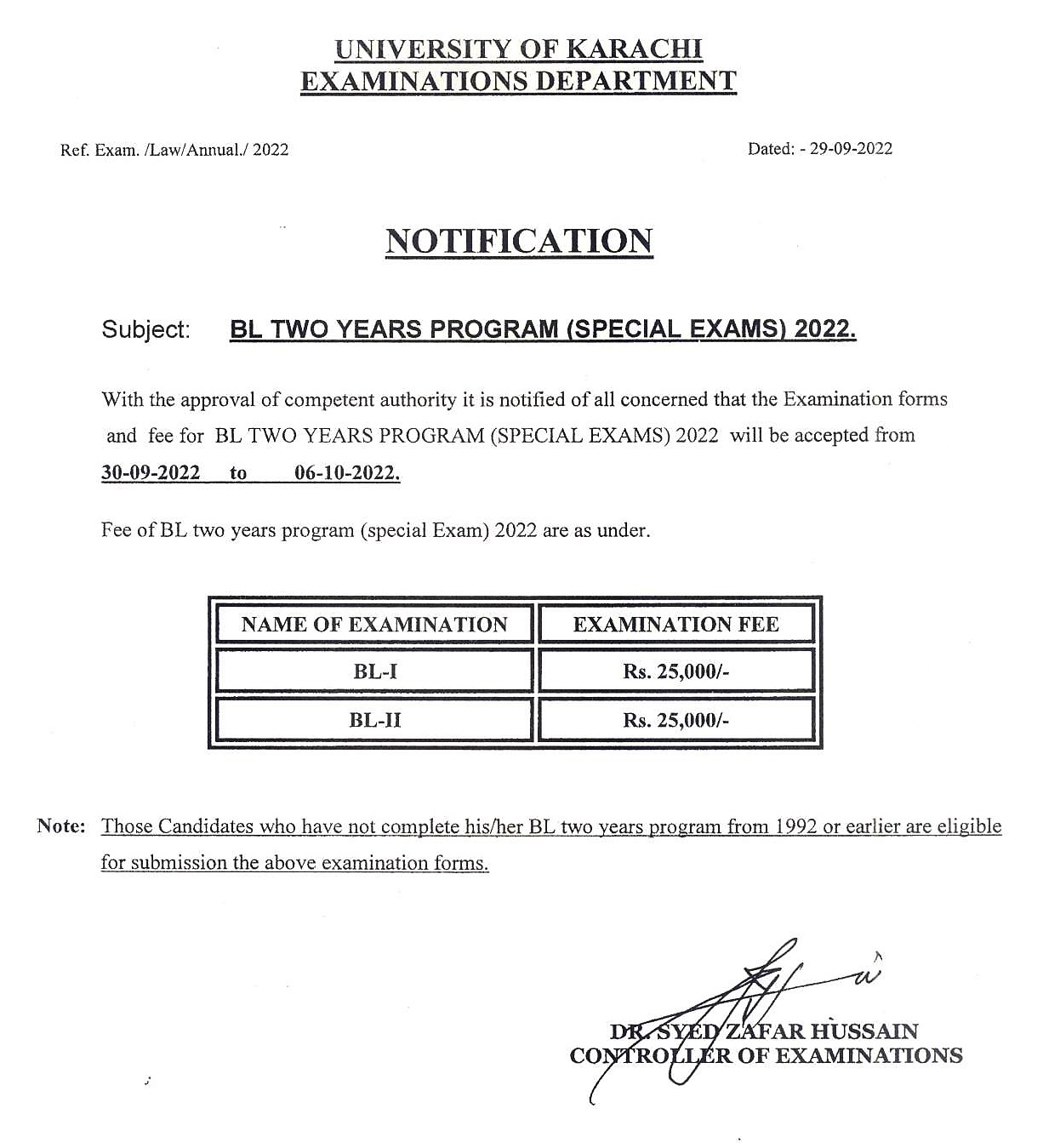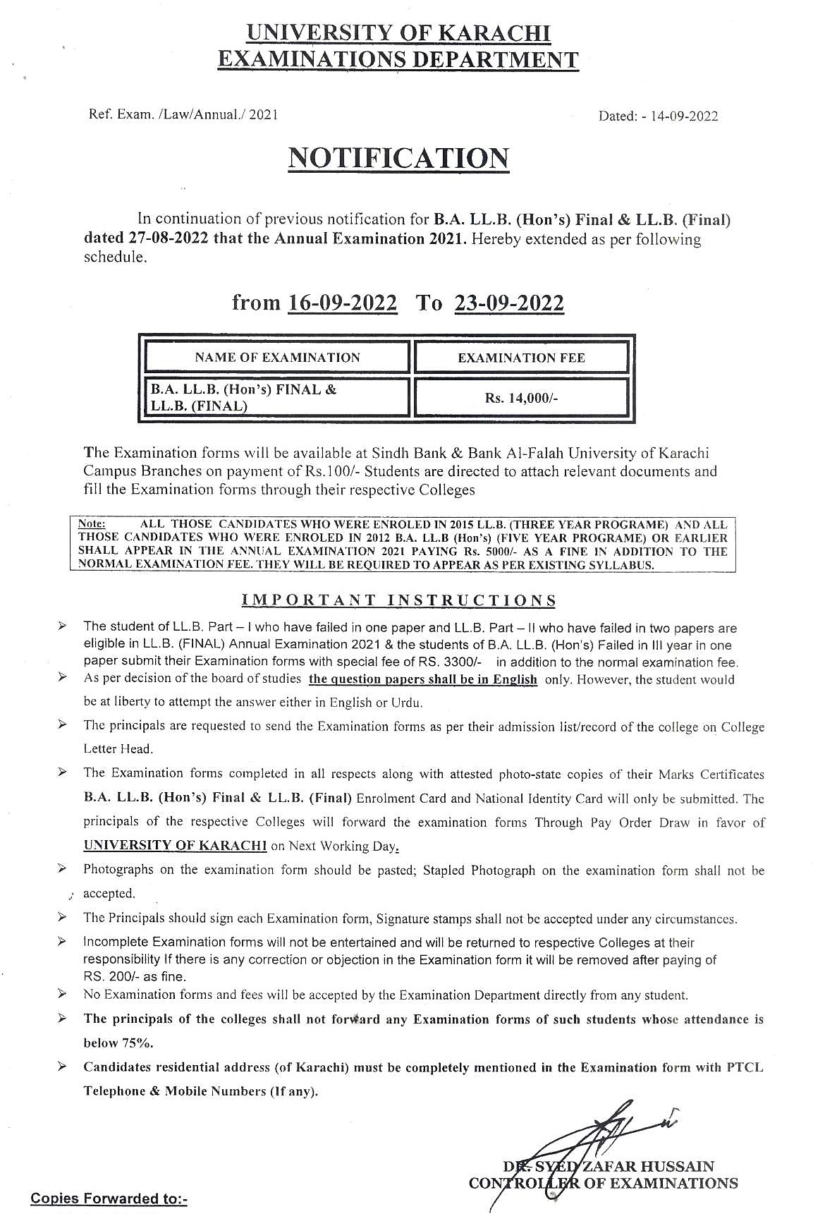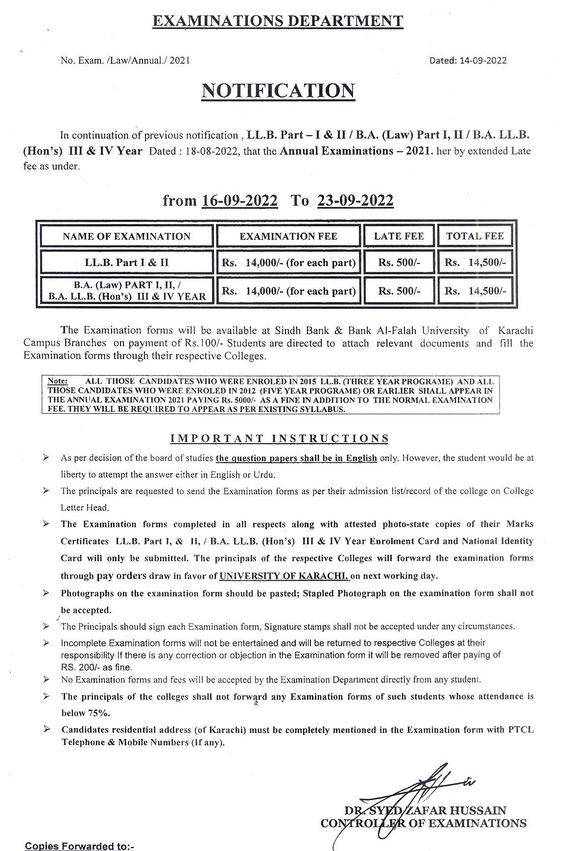 LL.B & B.A.LL.B (Hons') Fee Submission Date Extended