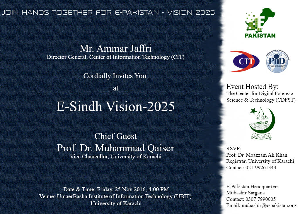 KU Education Department is holding a seminar and exhibition on Educational Technology on Monday 7th November 2016 at Arts Auditorium KU from 9:00 am to 3:30 pm. Member National Assembly Dr. Syeda Nafeesa Shah will be the chief guest.