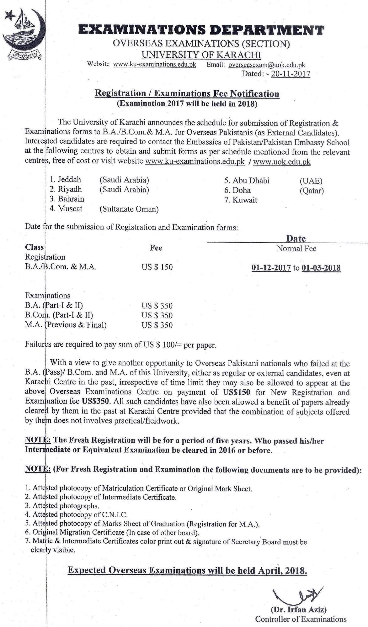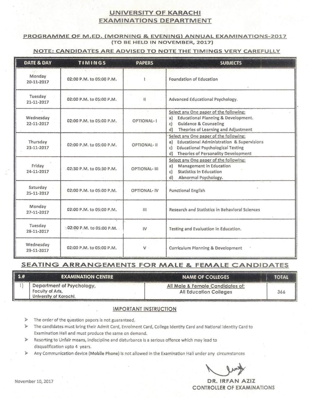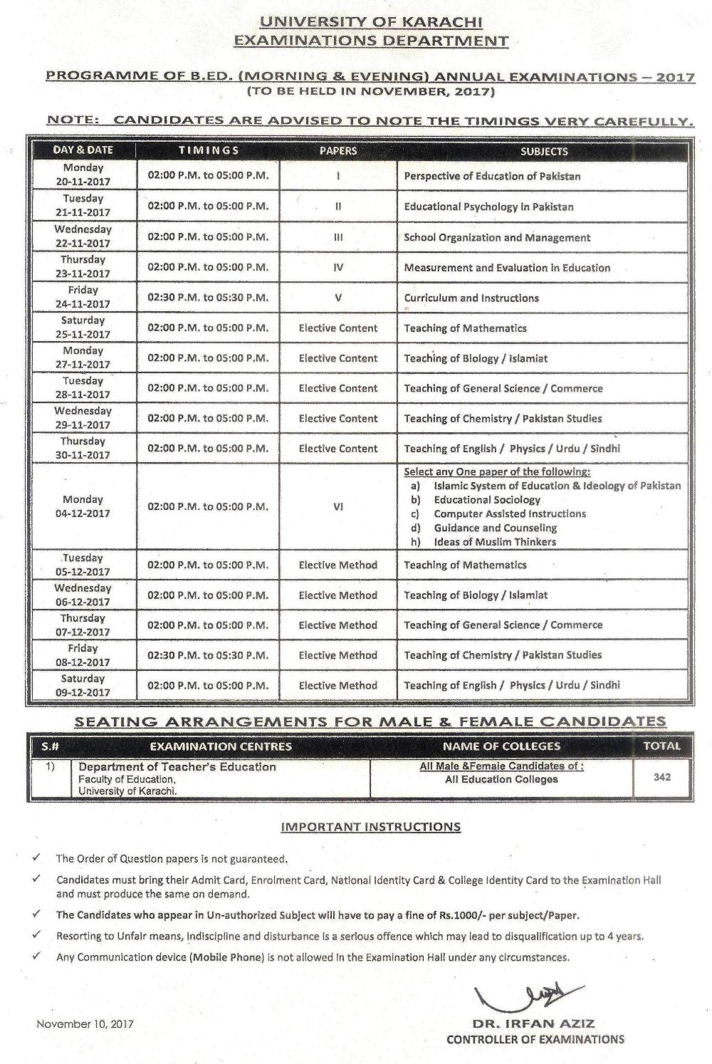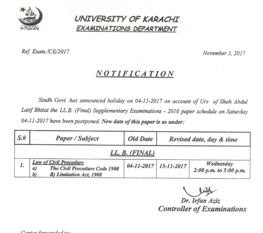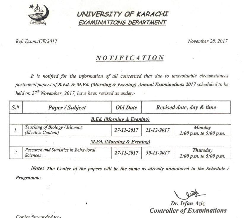 As per the directives of the CM Sindh and Sindh government, all papers to be held in KU on Monday 27th November 2017 are postponed.