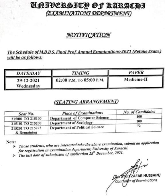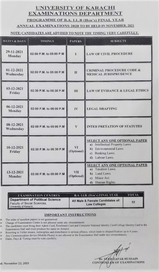 Schedule of LL.B (Hon's) Annual Examination 2020