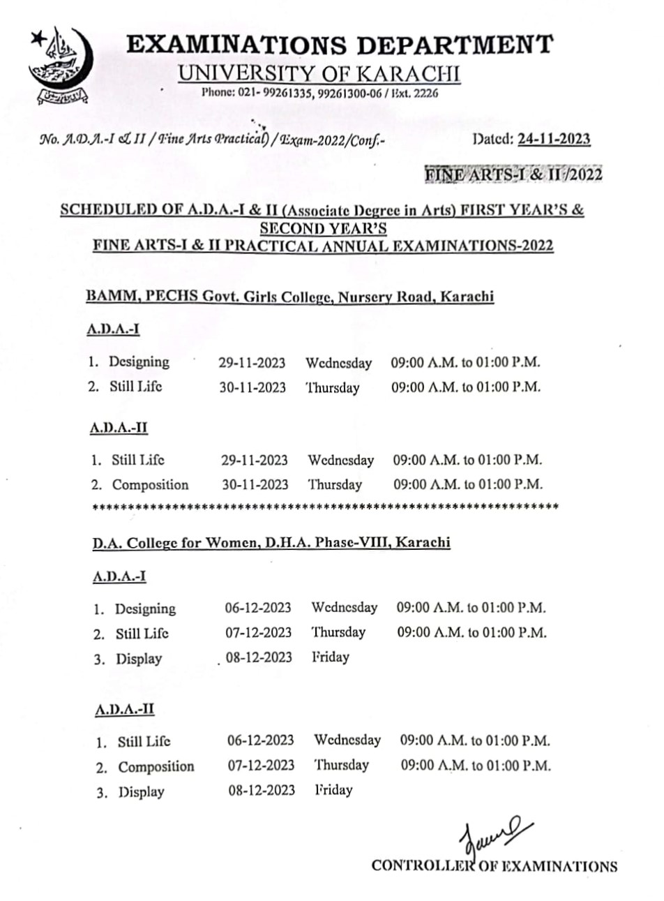 ADA (Fine Arts) Practical Annual Examination 2022