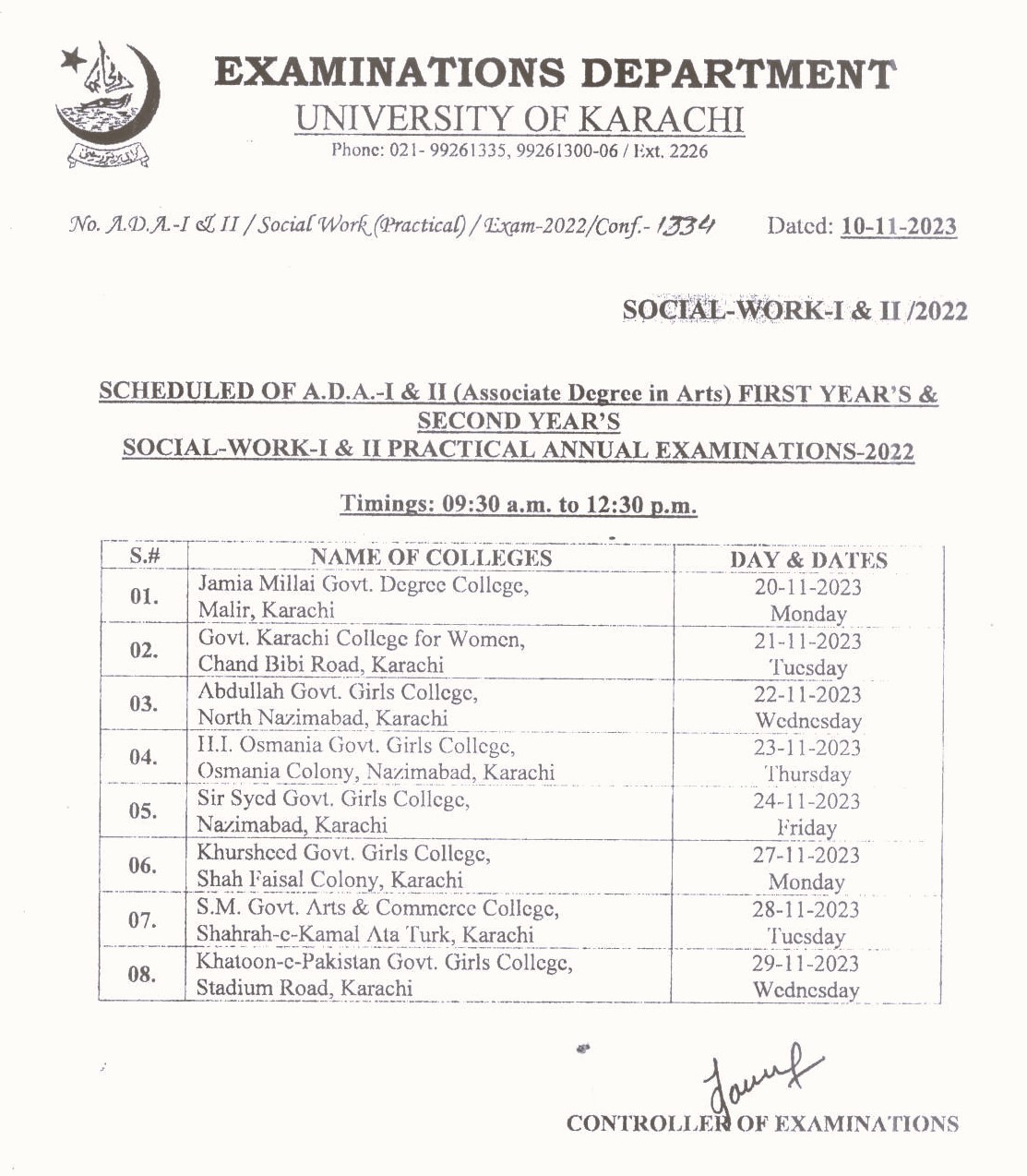 Social Work A.D.A Practical Annual Examination 2022
