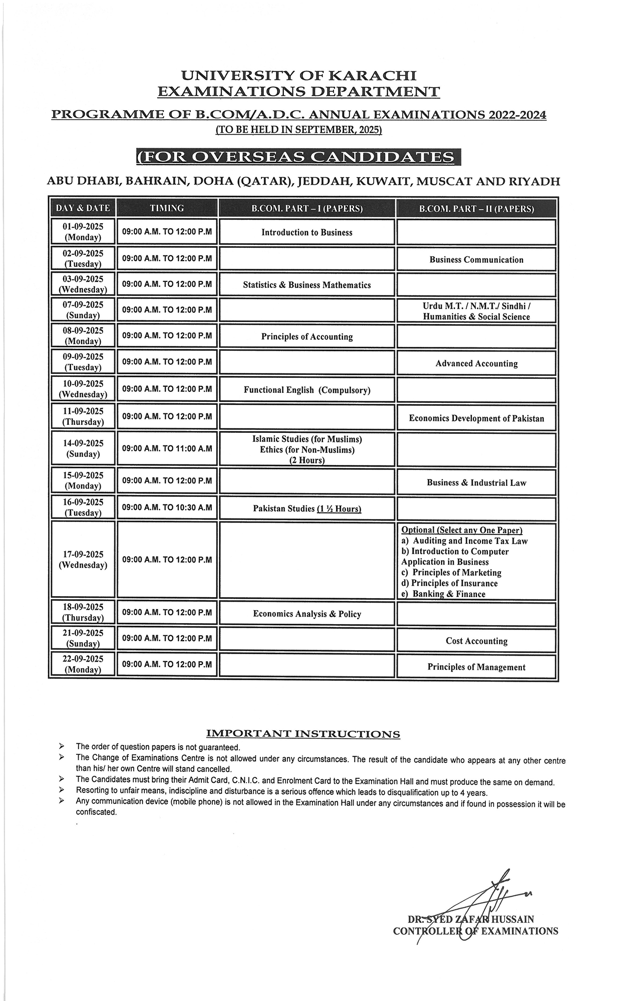 PROGRAMME OF B.COM / A.D.C. ANNUAL EXAMINATIONS 2022-2024