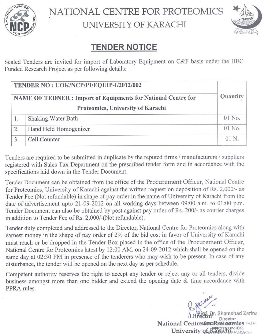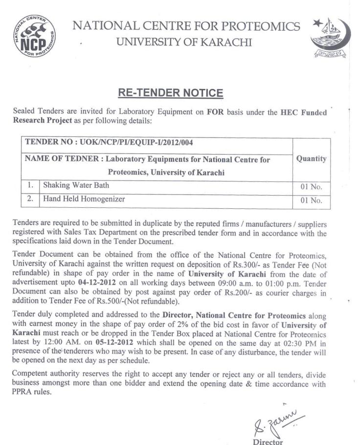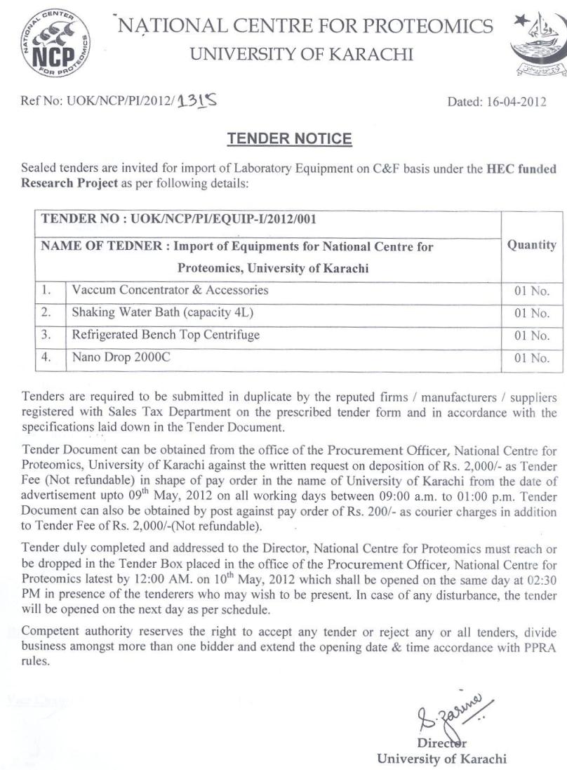 Dated : 19/04/12 Tender notice for procurement of laboratory equipment at NCP |