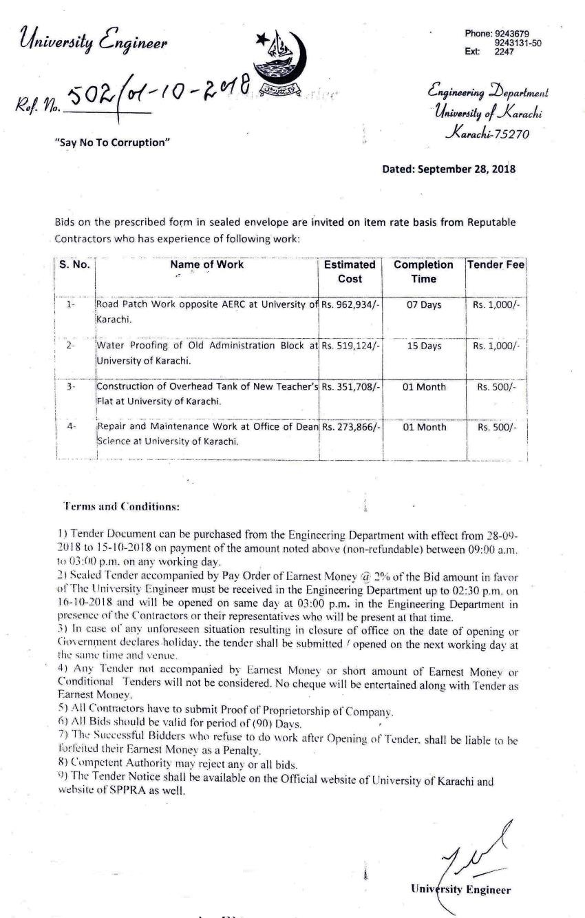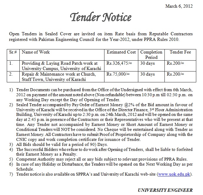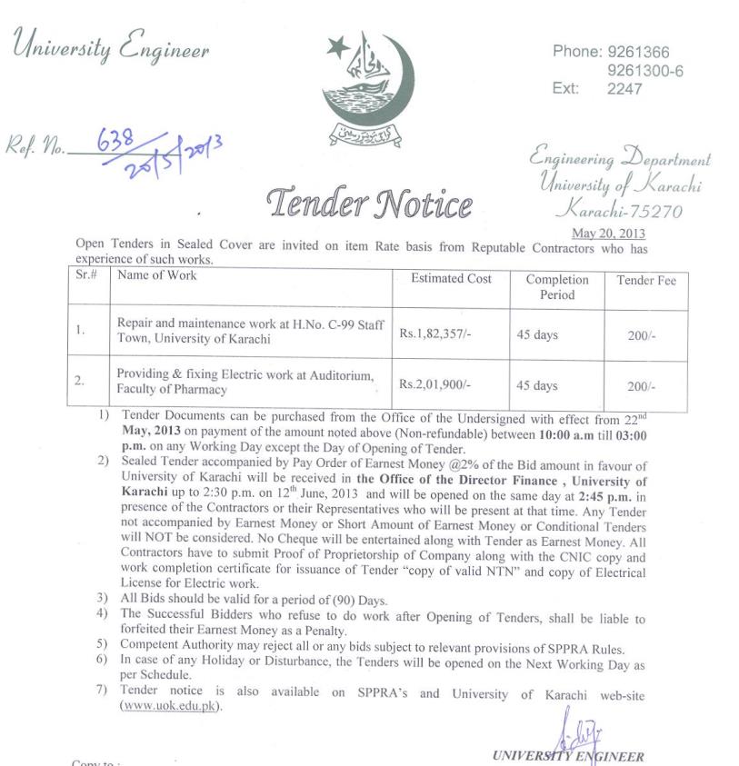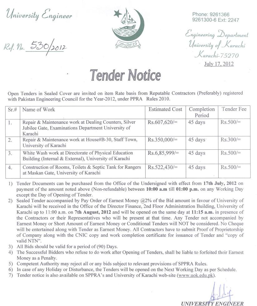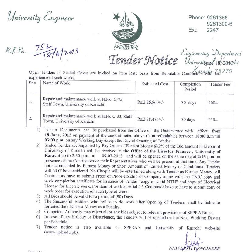 Dated : 18/06/13 Tender : Repair and maintenance work Notice |