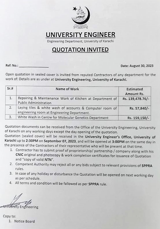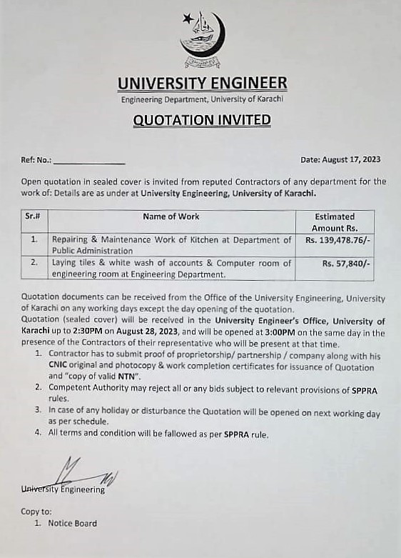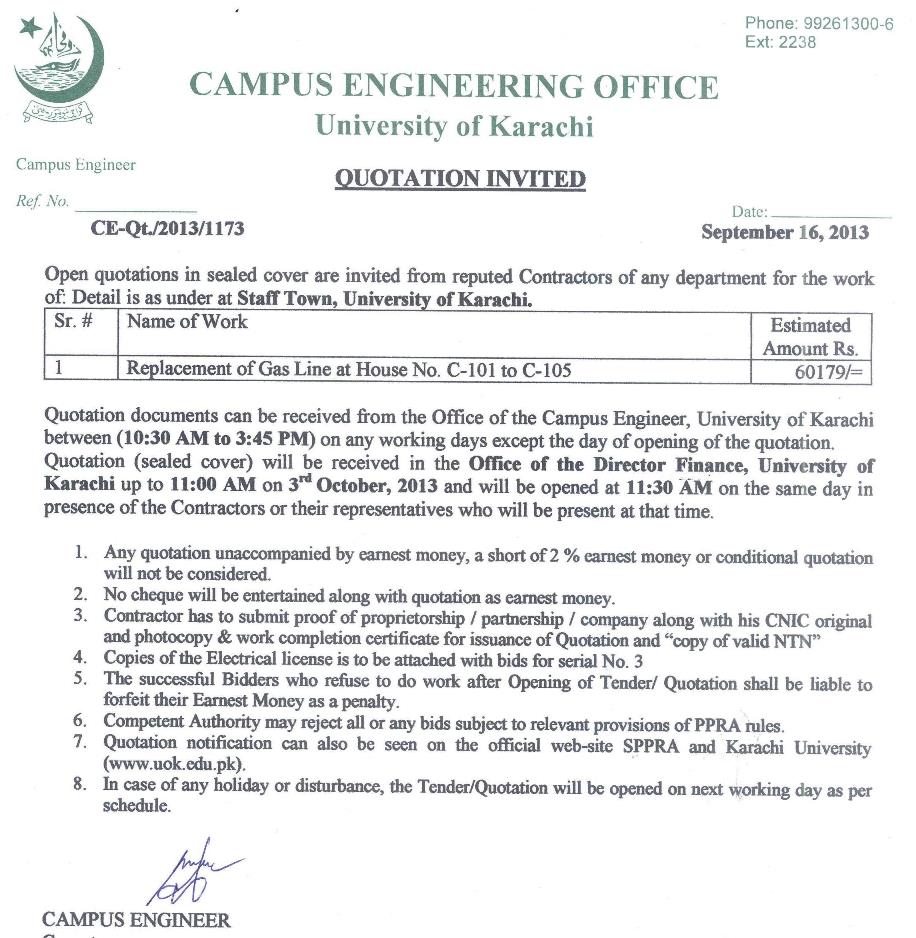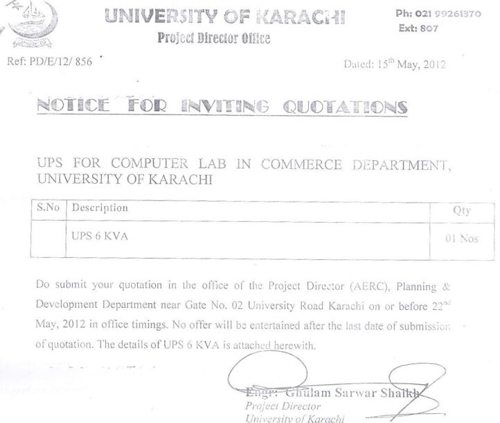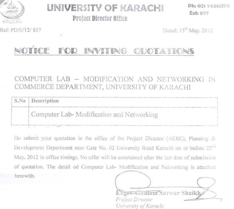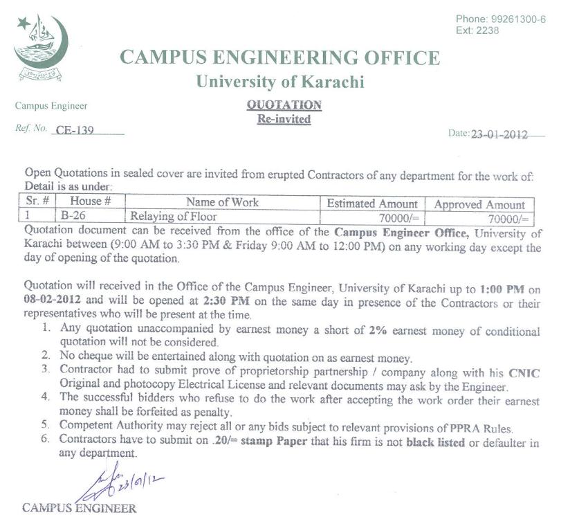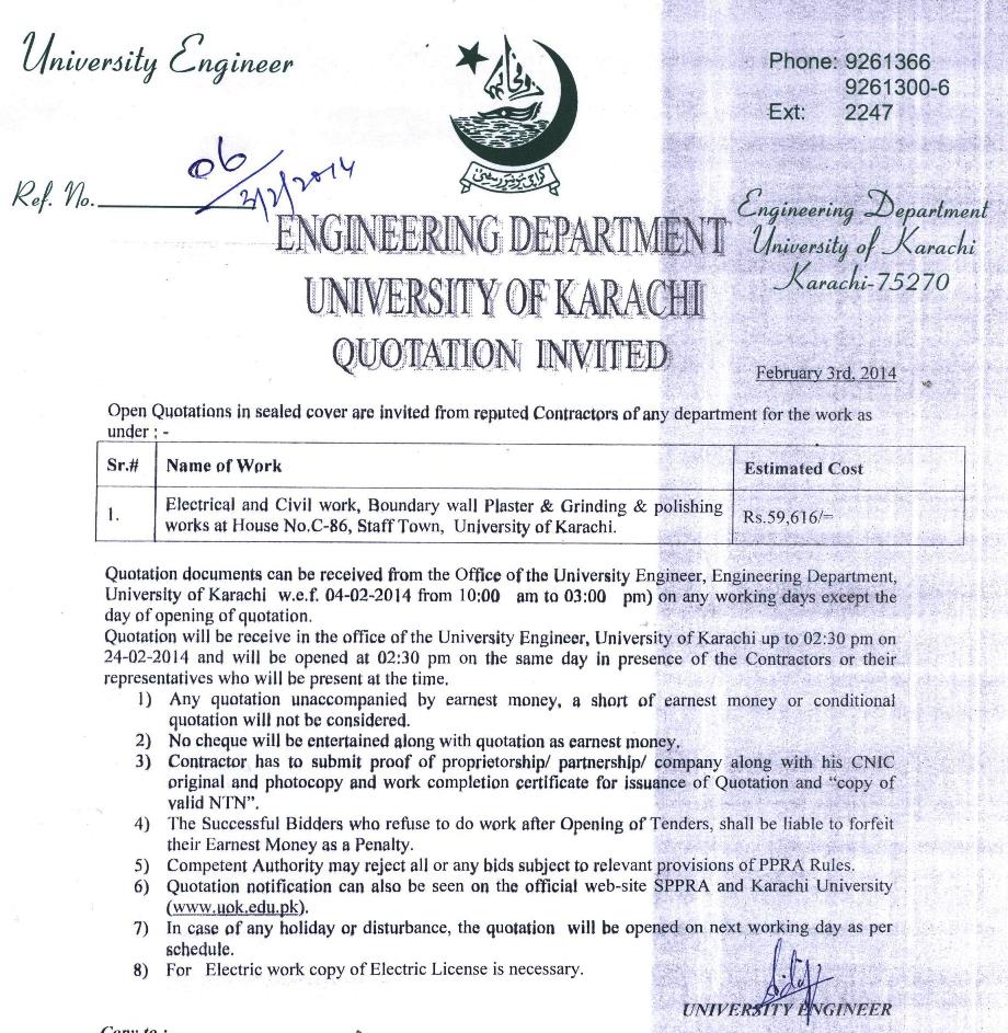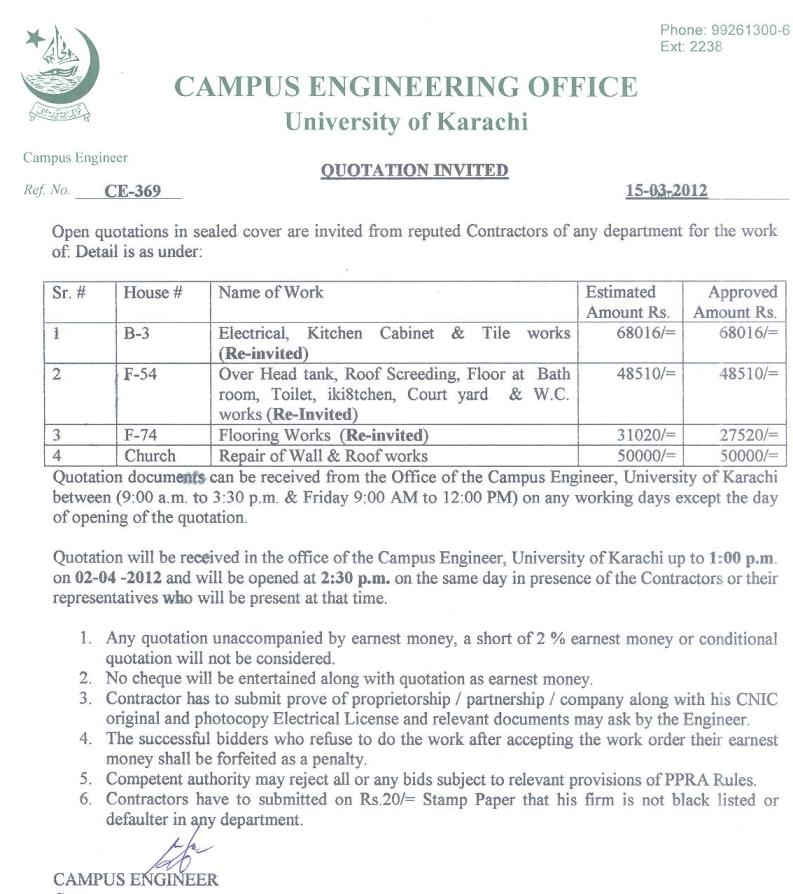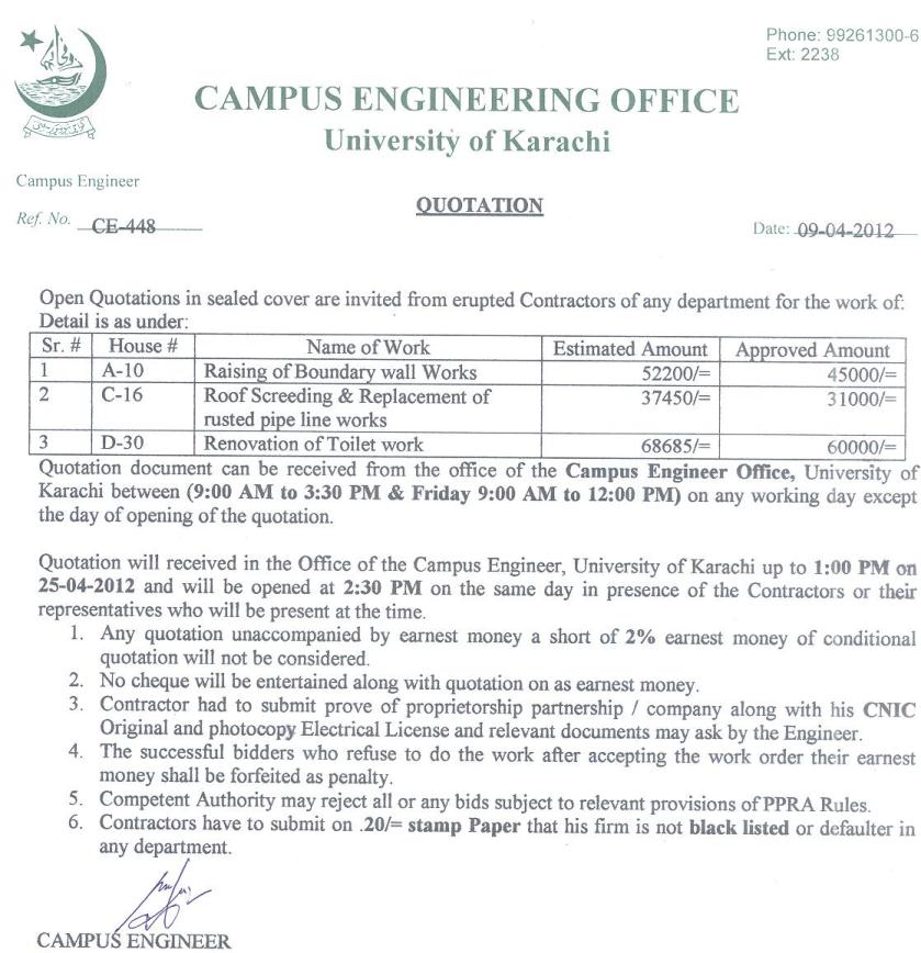 Dated : 29/04/13 Quotation invited : Electrical re-wiring :: Notice |