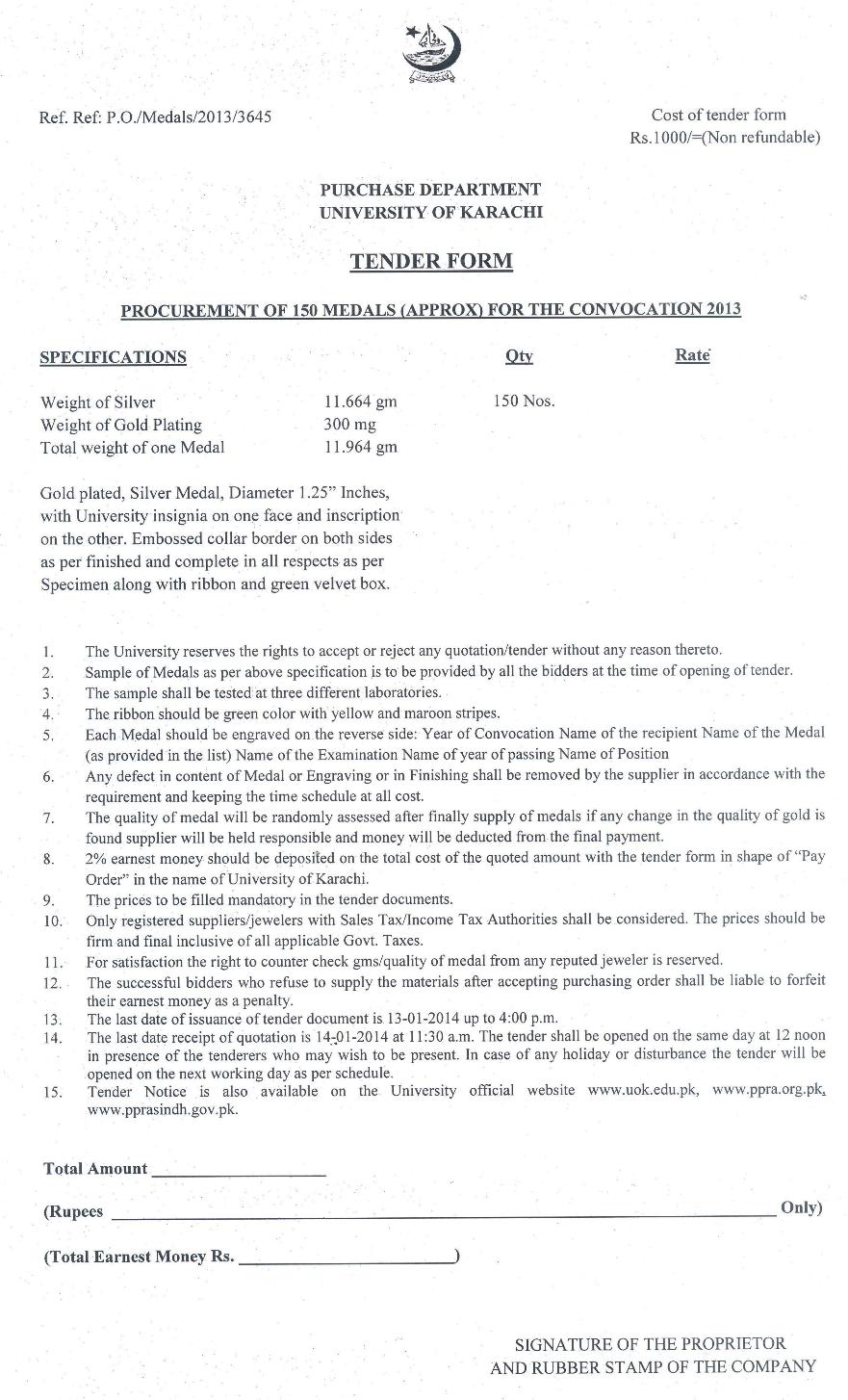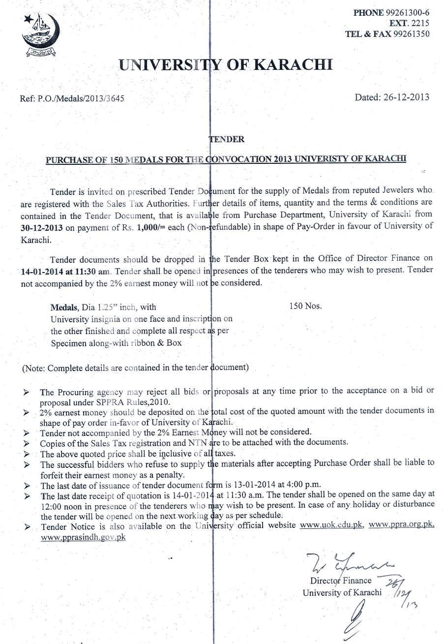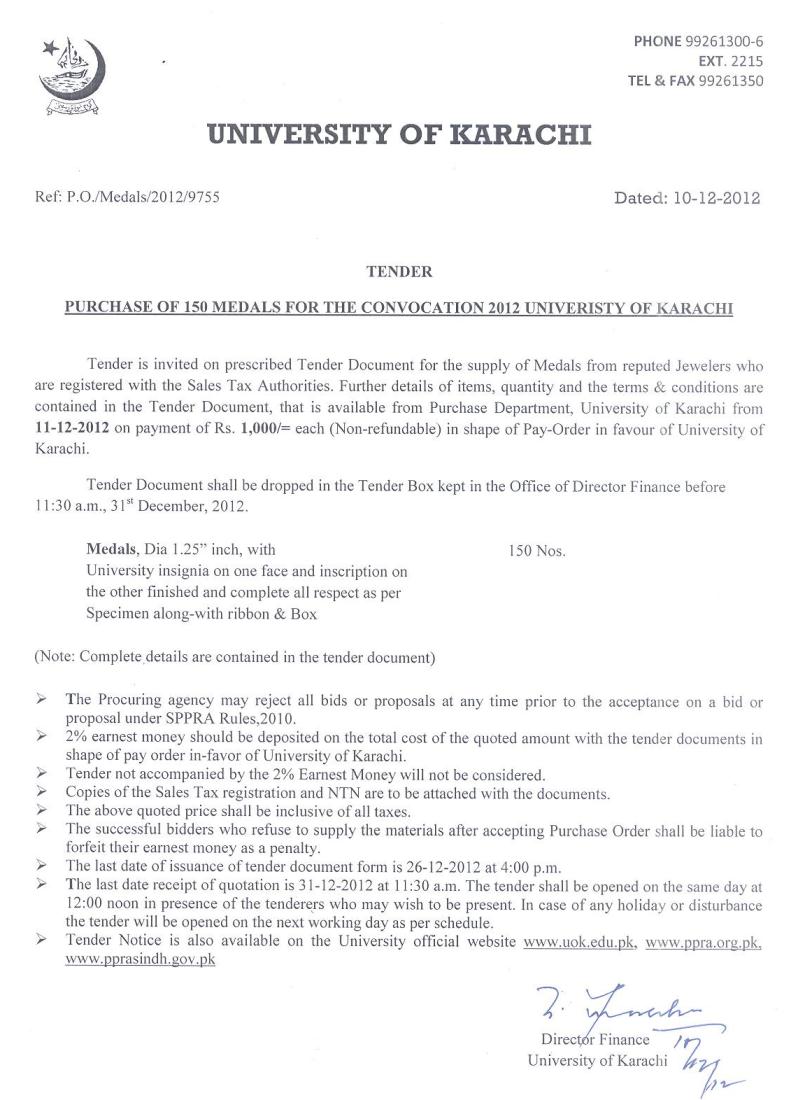 Dated : 11/12/12 Tender notice for gold medals |