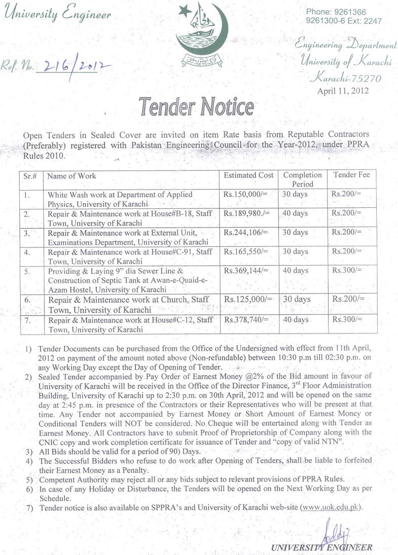 Dated : 12/04/12 Tender notice for repair and maintenance work at various locations. |