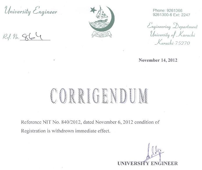 Dated : 15/11/12 Corrigendum |