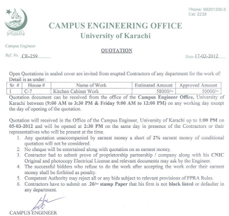 Dated : 17/02/12 Quotation invited for kitchen cabinet work |