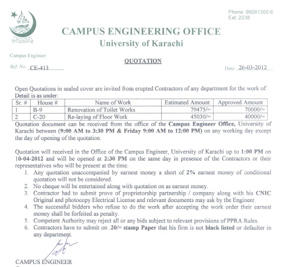 Dated : 20/04/12 Quotation invited for repair and maintenance work |