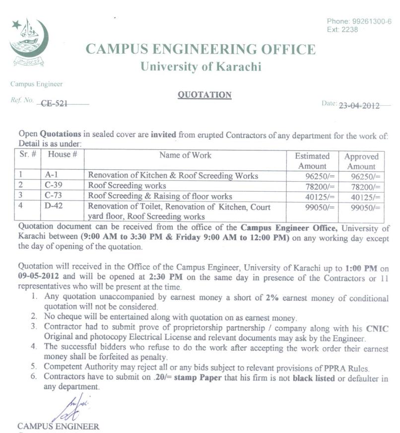 Dated : 26/04/12 Quotation invited for repair and maintenance work |