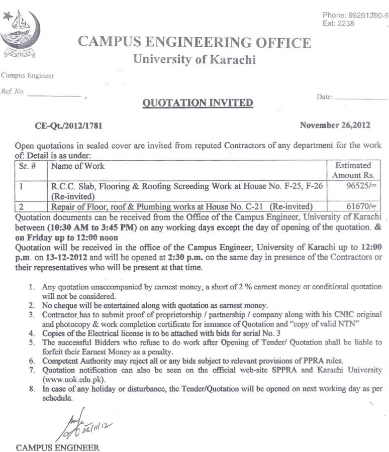 Dated : 18/12/12 Quotation invited for repair and maintenance work. |